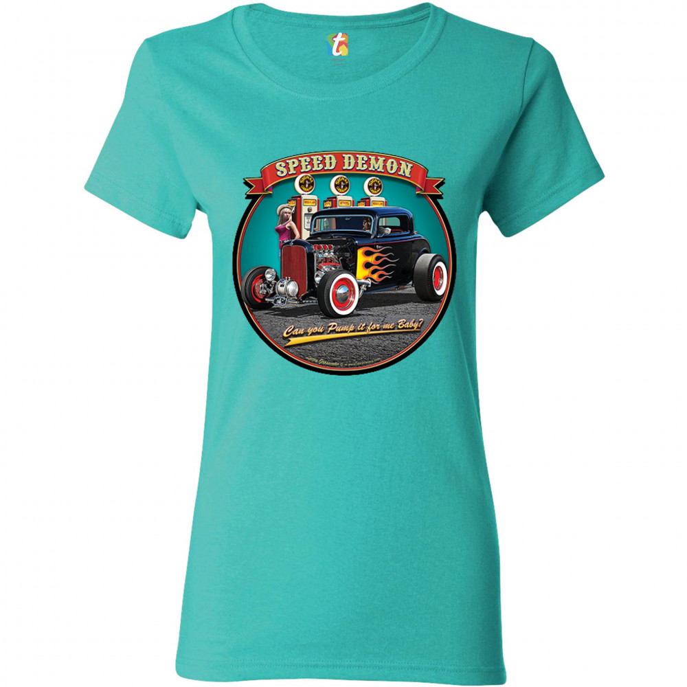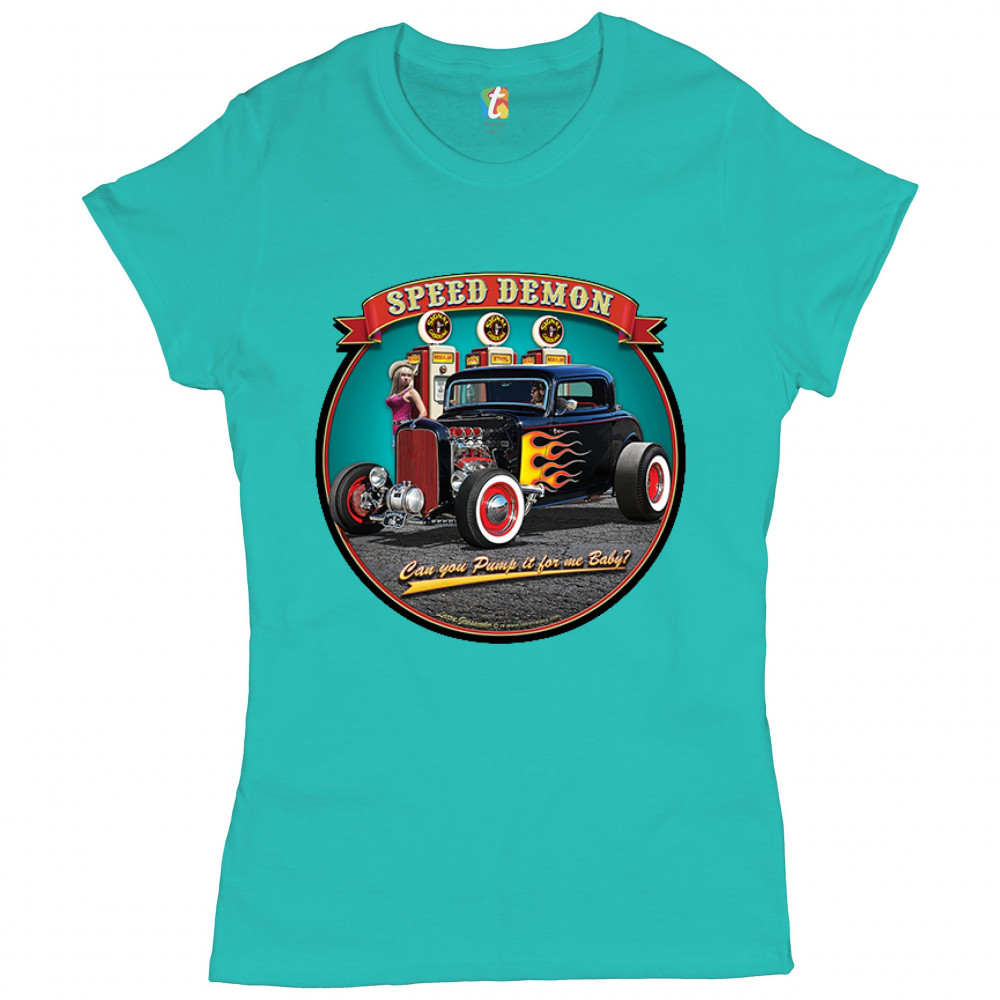 1932 DEUCE SPEED DEMON t-shirt hot rod muscle car drag racing women's tee light blue