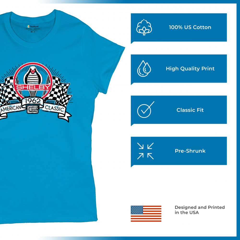 Celebrate 50 years of Shelby's American-made muscle with this classic design, capturing the essence of the Cobra, GT350, and the legendary Ford Mustang.