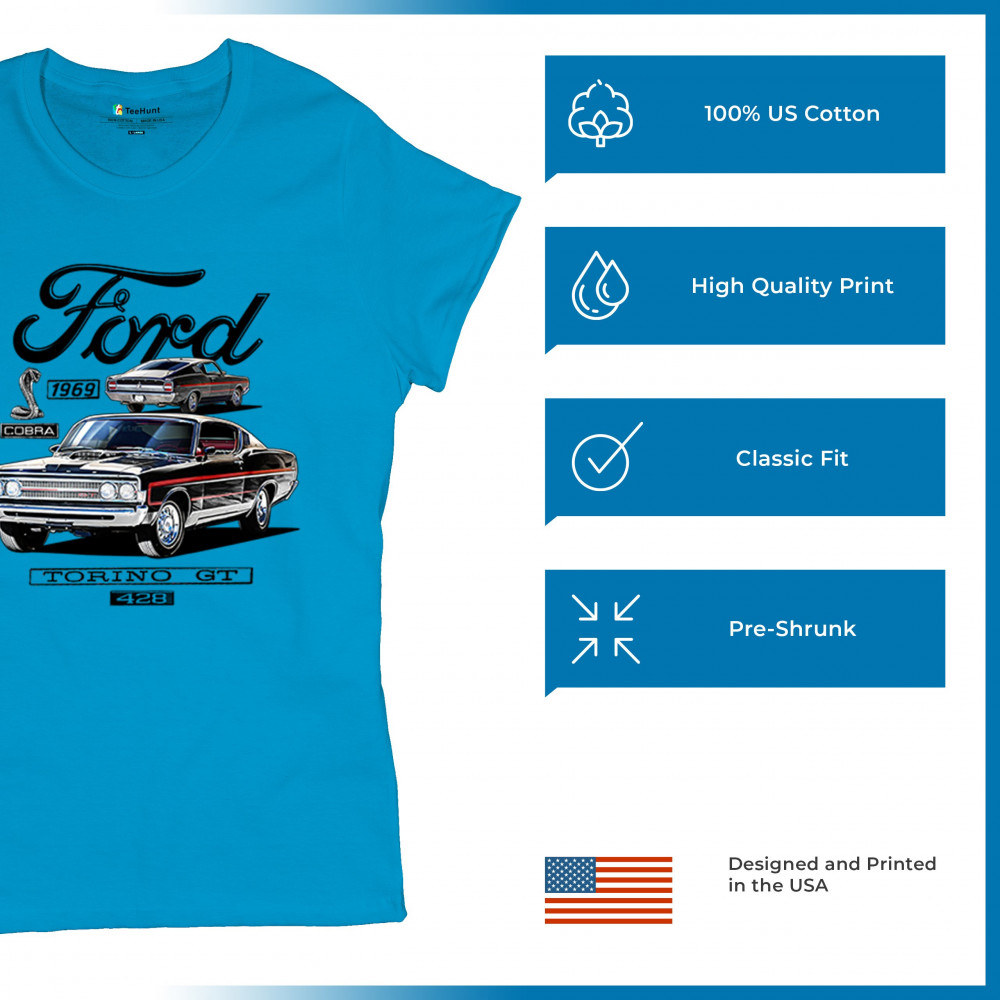 1969 Ford Torino GT Cobra design with racing stripes and Cobra badge—perfect for muscle car fans, Ford collectors, and show displays.