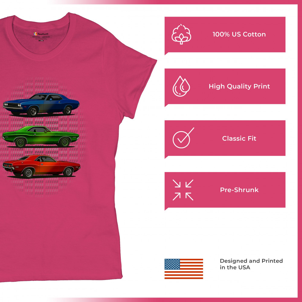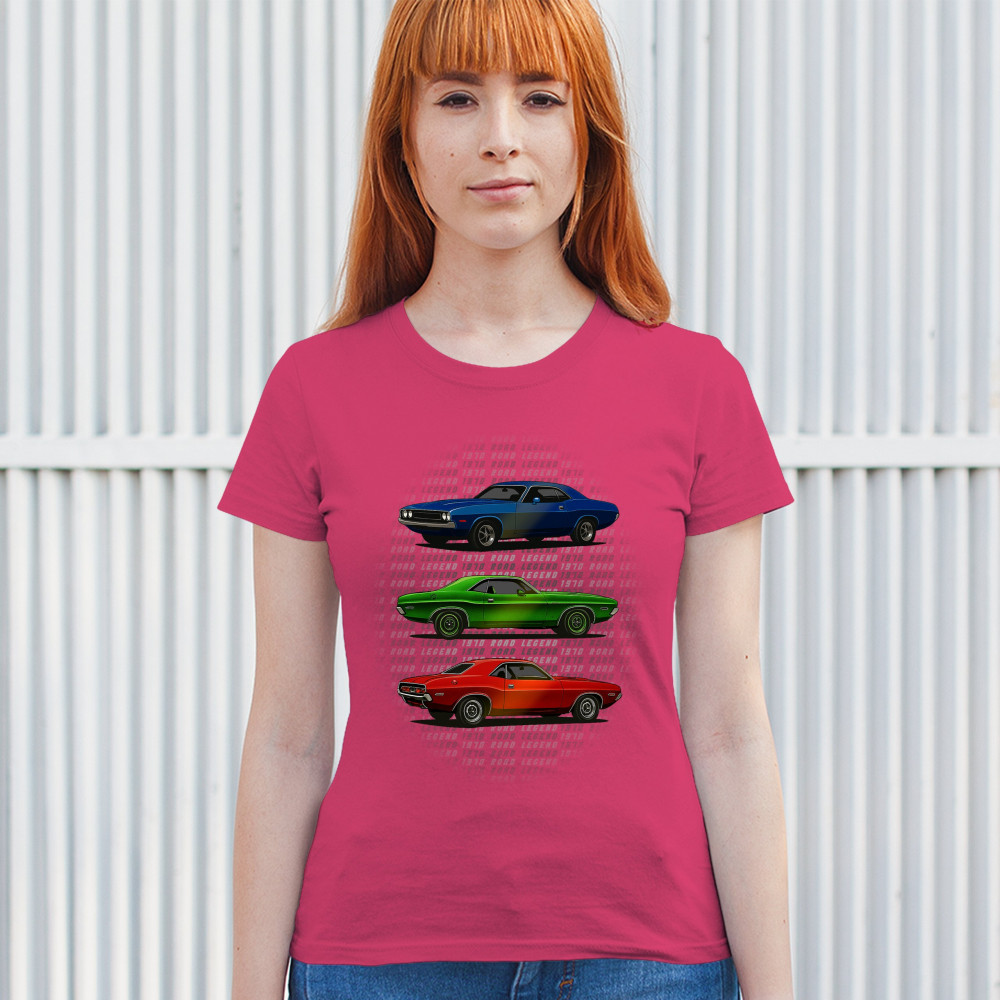Three bold 1970 muscle cars, stacked in red, green, and blue, celebrate vintage power and road legend status. This retro-inspired design captures the essence of American car culture—made for gearheads, V8 fans, and anyone who lives for classic performance, heritage, and style.
