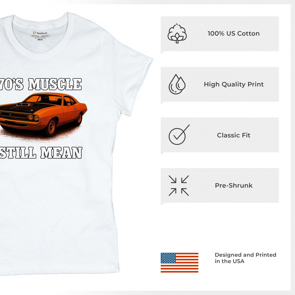 Celebrate vintage horsepower with this bold 70s muscle car design that proves it's still mean. Features classic styling, aggressive stance, and old-school V8 performance pride. A must-have for retro car collectors, gearheads, and muscle enthusiasts who live for raw American power.