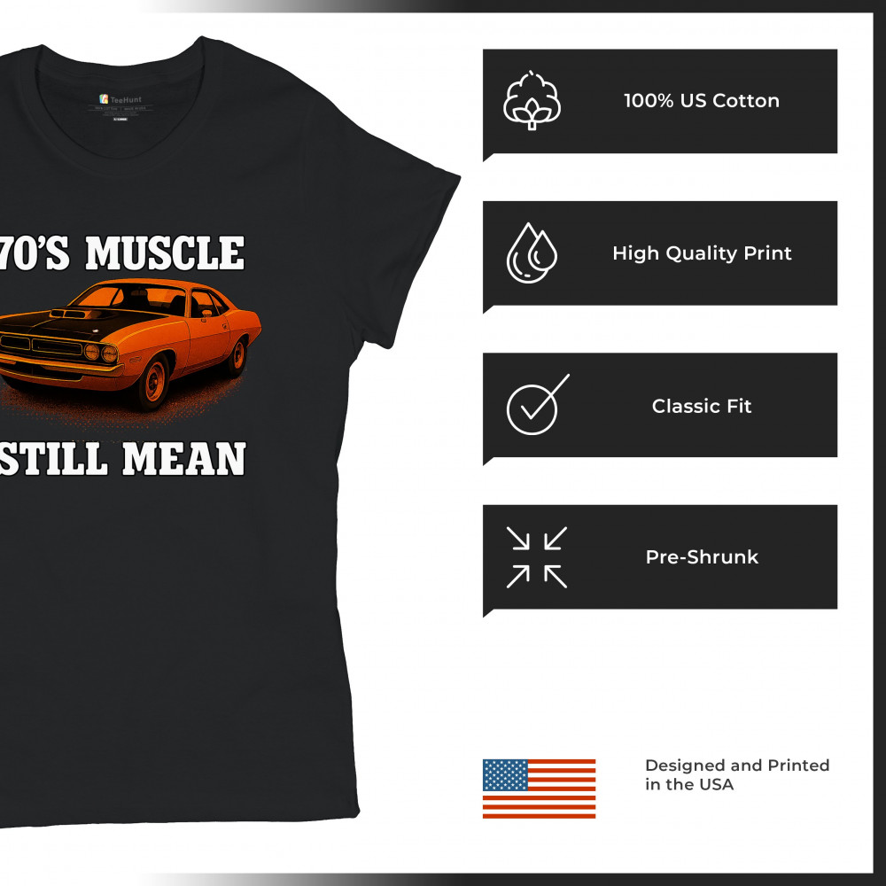 Celebrate vintage horsepower with this bold 70s muscle car design that proves it's still mean. Features classic styling, aggressive stance, and old-school V8 performance pride. A must-have for retro car collectors, gearheads, and muscle enthusiasts who live for raw American power.
