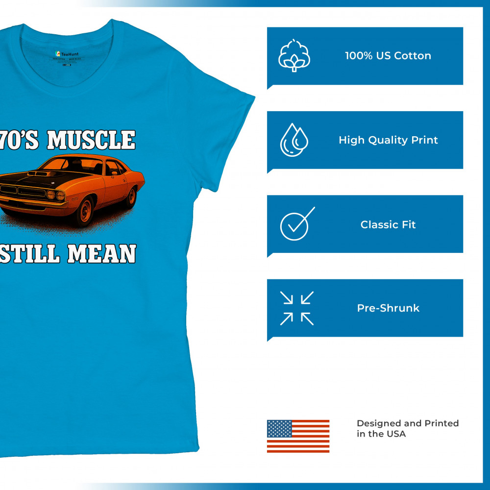Celebrate vintage horsepower with this bold 70s muscle car design that proves it's still mean. Features classic styling, aggressive stance, and old-school V8 performance pride. A must-have for retro car collectors, gearheads, and muscle enthusiasts who live for raw American power.