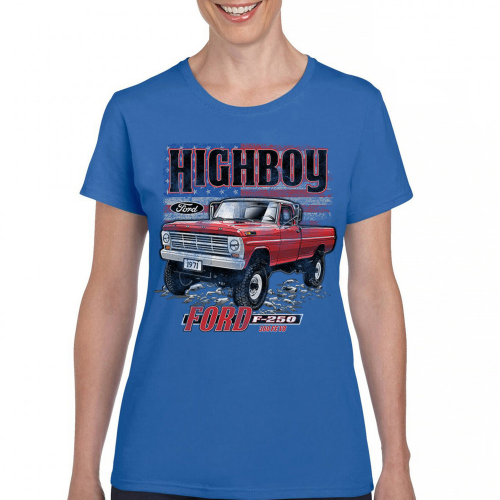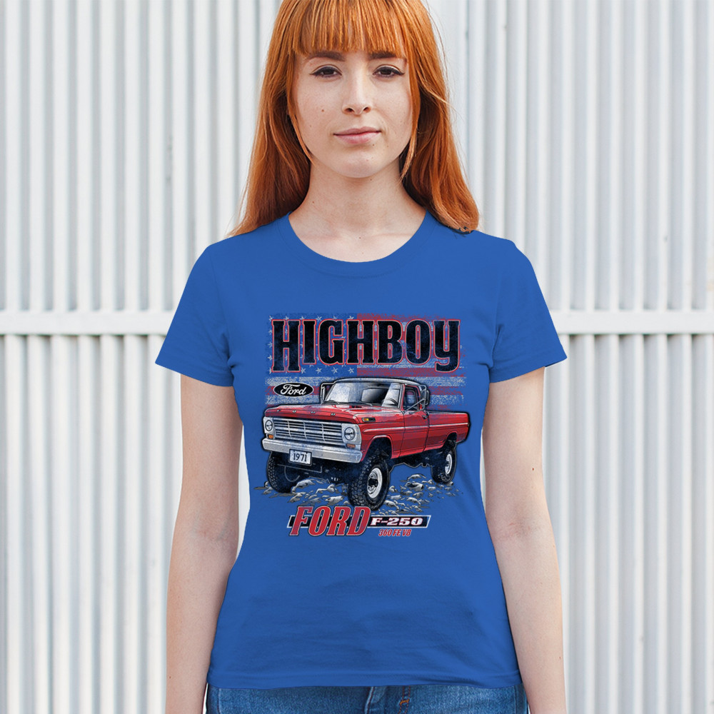 This vintage truck design features a 1971 Ford F-250 Highboy 4x4 with a classic lifted stance and patriotic flag background. Bold and nostalgic, it’s perfect for classic truck fans, 4x4 lovers, off-roaders, and collectors who appreciate American V8 tradition. Show it off at truck shows, meets, or cruise nights.