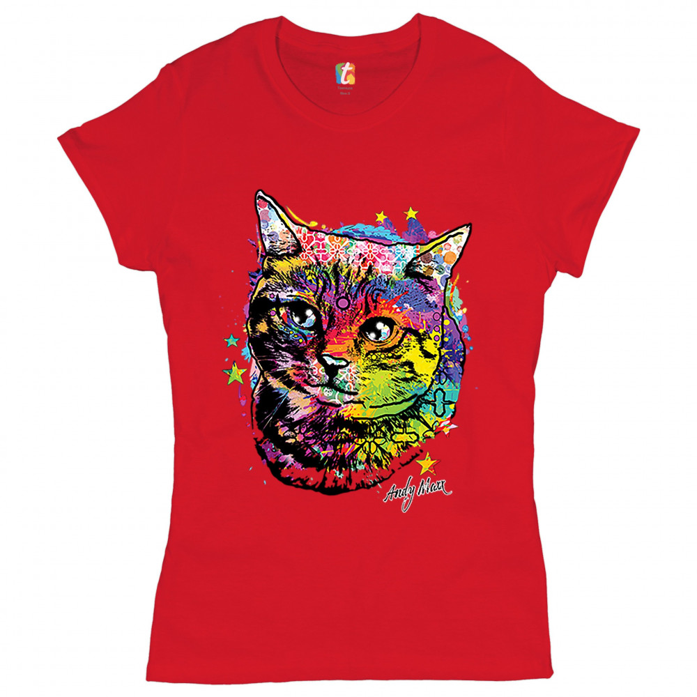 ADORABLE KITTEN t-shirt neon multicolor kitty andy maxx cat lover women's tee red