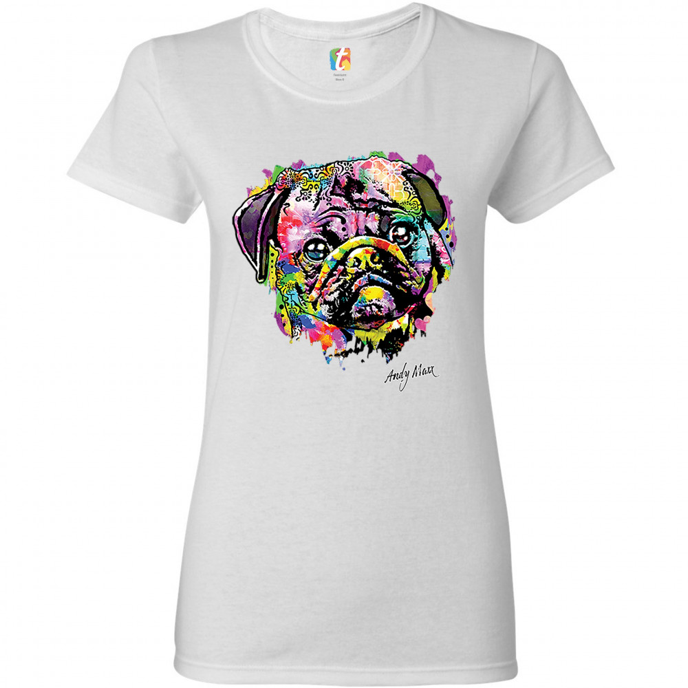 ADORABLE PUG t-shirt andy maxx pet owner i love my dog doggie women's tee white