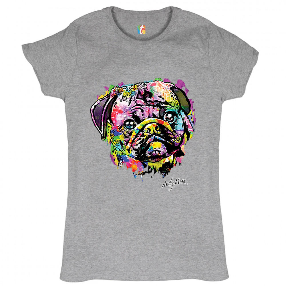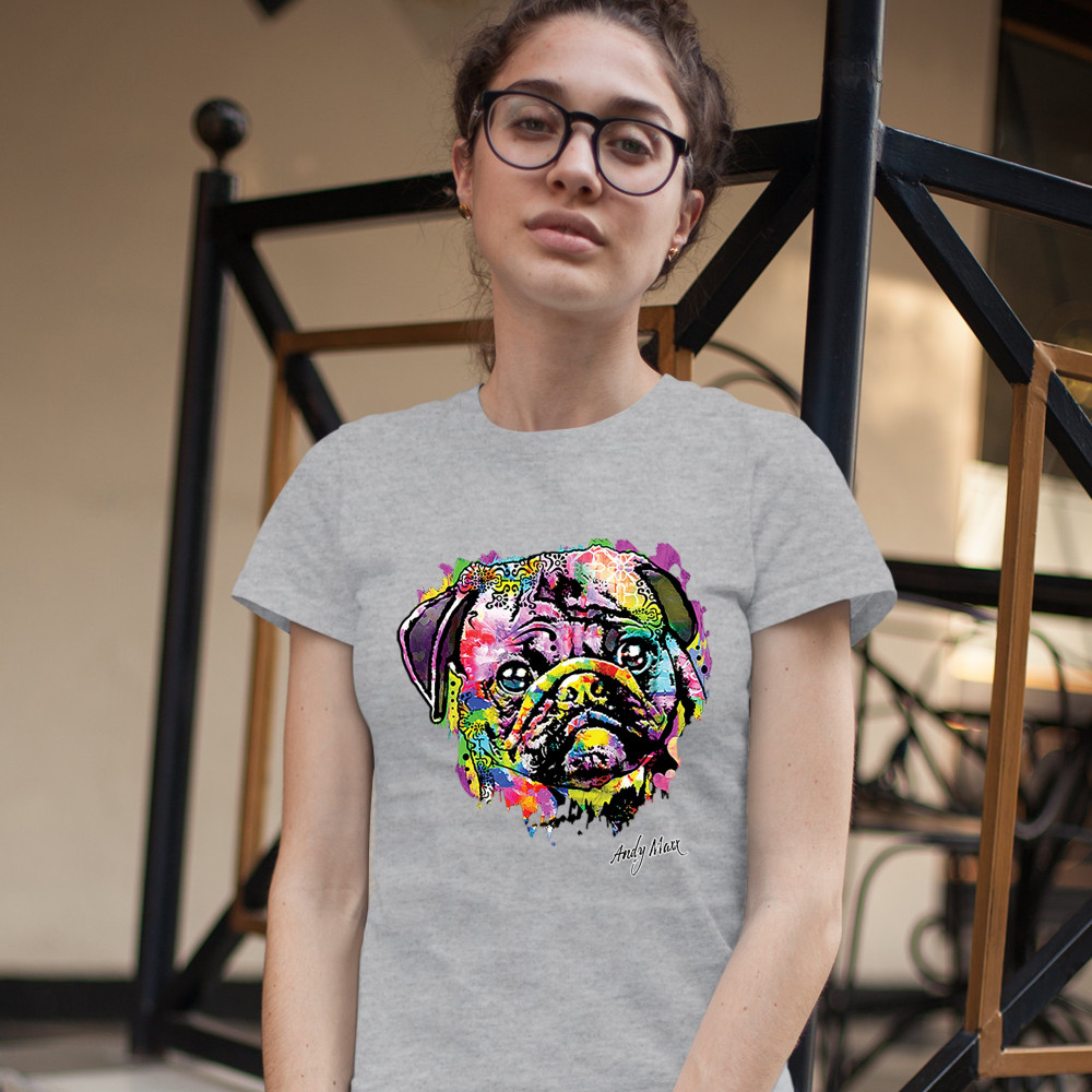 A beautiful print featuring a colorful face of an adorable pug. Below the dog the name of the artist - Andy Maxx - is included. A great choice for a person who is in love with these adorable and gentle dogs.