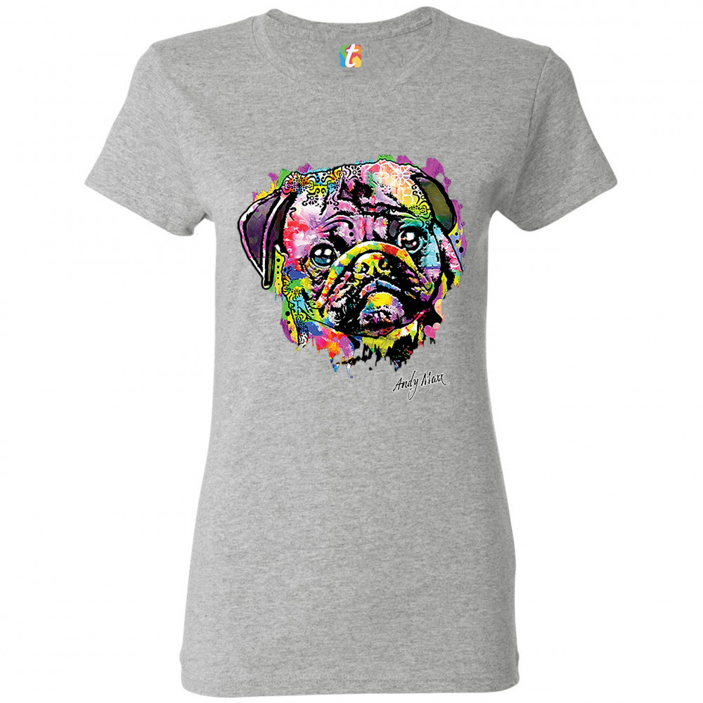 ADORABLE PUG t-shirt andy maxx pet owner i love my dog doggie women's tee gray