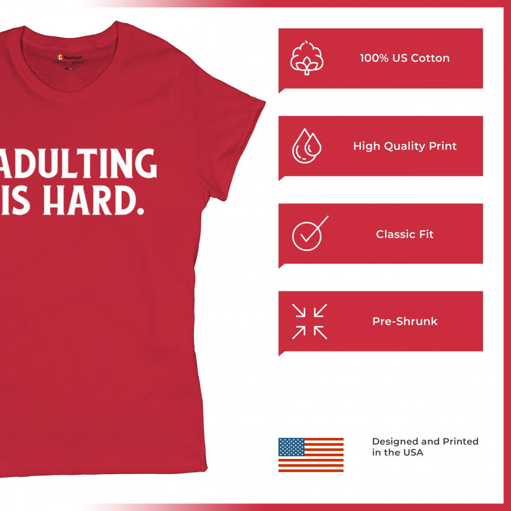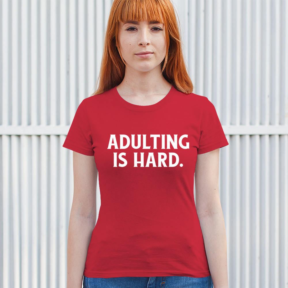Our 'ADULTING IS HARD.' shirt is the ultimate expression of modern life's humorous side. Ideal for anyone from stressed-out parents to sarcastic Gen Z teenagers who believe 'don't grow up it's a trap.' Whether you're celebrating a birthday or just need to say 'nope' to adulting, this tee is your badge of honor. Embrace your 'adultish' lifestyle, with a side of wine or coffee, and let the world know that you're doing your best.