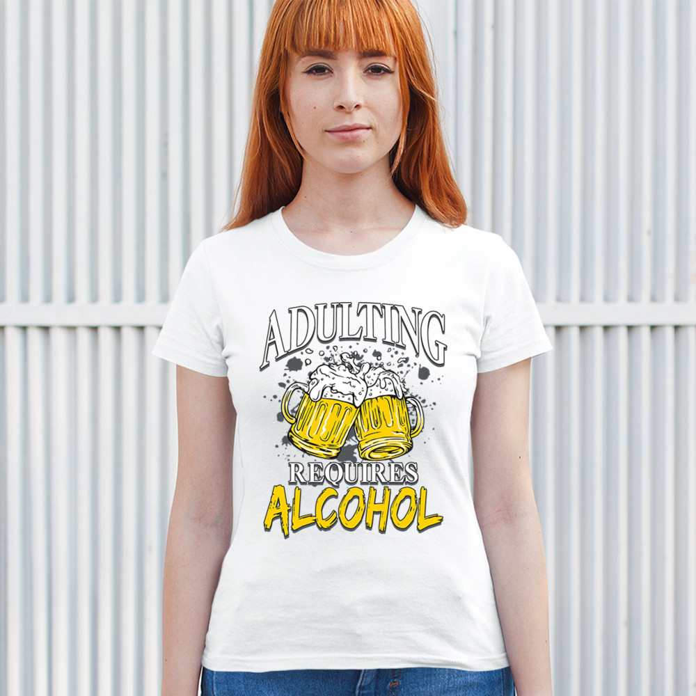 This bold design features two foamy beer mugs clinking together under the phrase “Adulting Requires Alcohol.†Perfect for sarcastic beer lovers, party animals, and anyone navigating grown-up life with booze in hand. Ideal for bars, weekends, or just surviving Mondays with humor and hops.