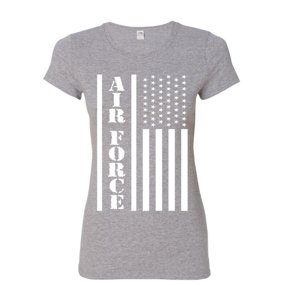 AIR FORCE FLAG MILITARY women's t-shirt patriot veteran stars & stripes shirt gray