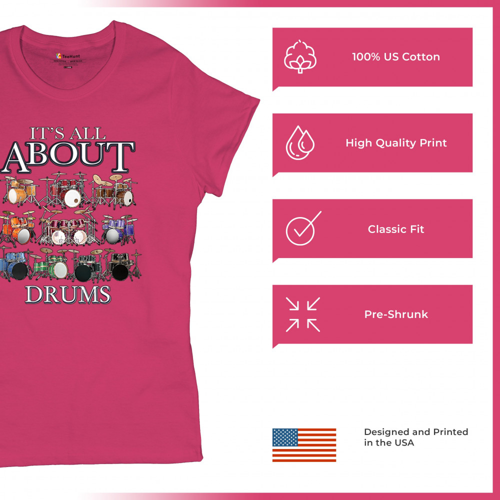 Celebrate the beat with this colorful drum set design that highlights nine complete kits in a bold grid. Whether you’re a beginner or a pro, this is for drummers, percussionists, music students, and rhythm lovers who take their passion seriously. Perfect for stage gigs, jam sessions, or casual everyday wear that says “It’s all about drums.â€