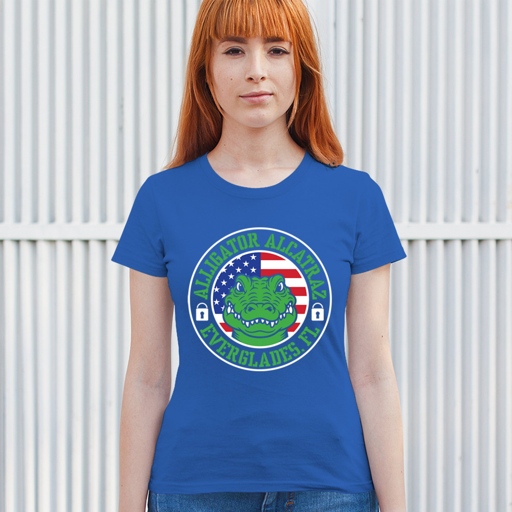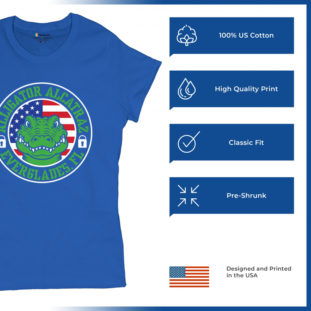 Stand tall in your values with this Alligator Alcatraz Everglades design. A fierce mash-up of patriotic graphics and political edge—perfect for conservative voices, USA pride supporters, and America First believers. Lock in your statement with this bold, affordable everyday style.