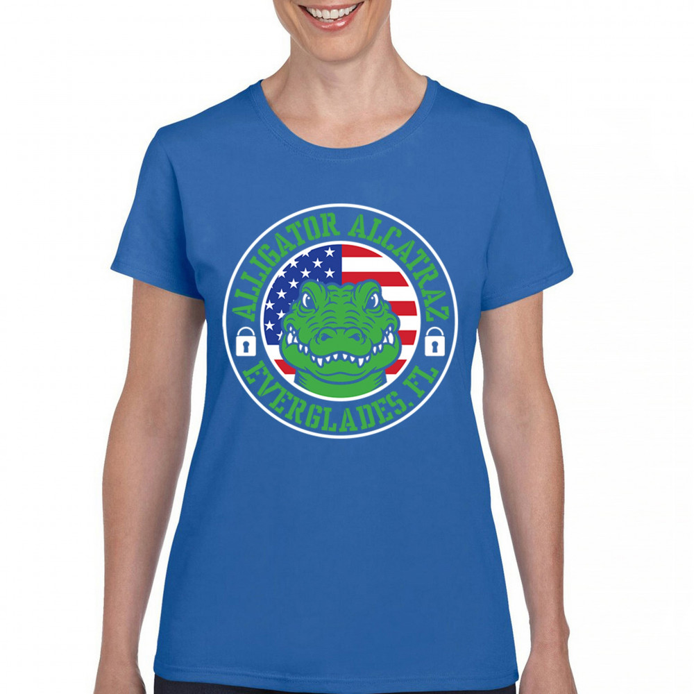 Bold Alligator Alcatraz design with USA flag and conservative message. Patriotic, America First, and proud to take a stand for national values.