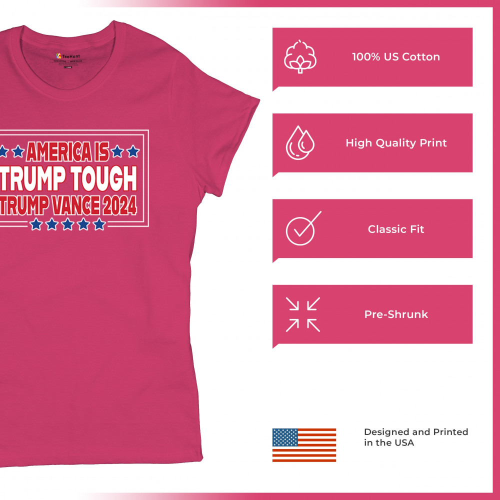 Support Trump and Vance in 2024 with this bold, patriotic design, perfect for rallies and everyday wear. Stand for America First principles and conservative values.
