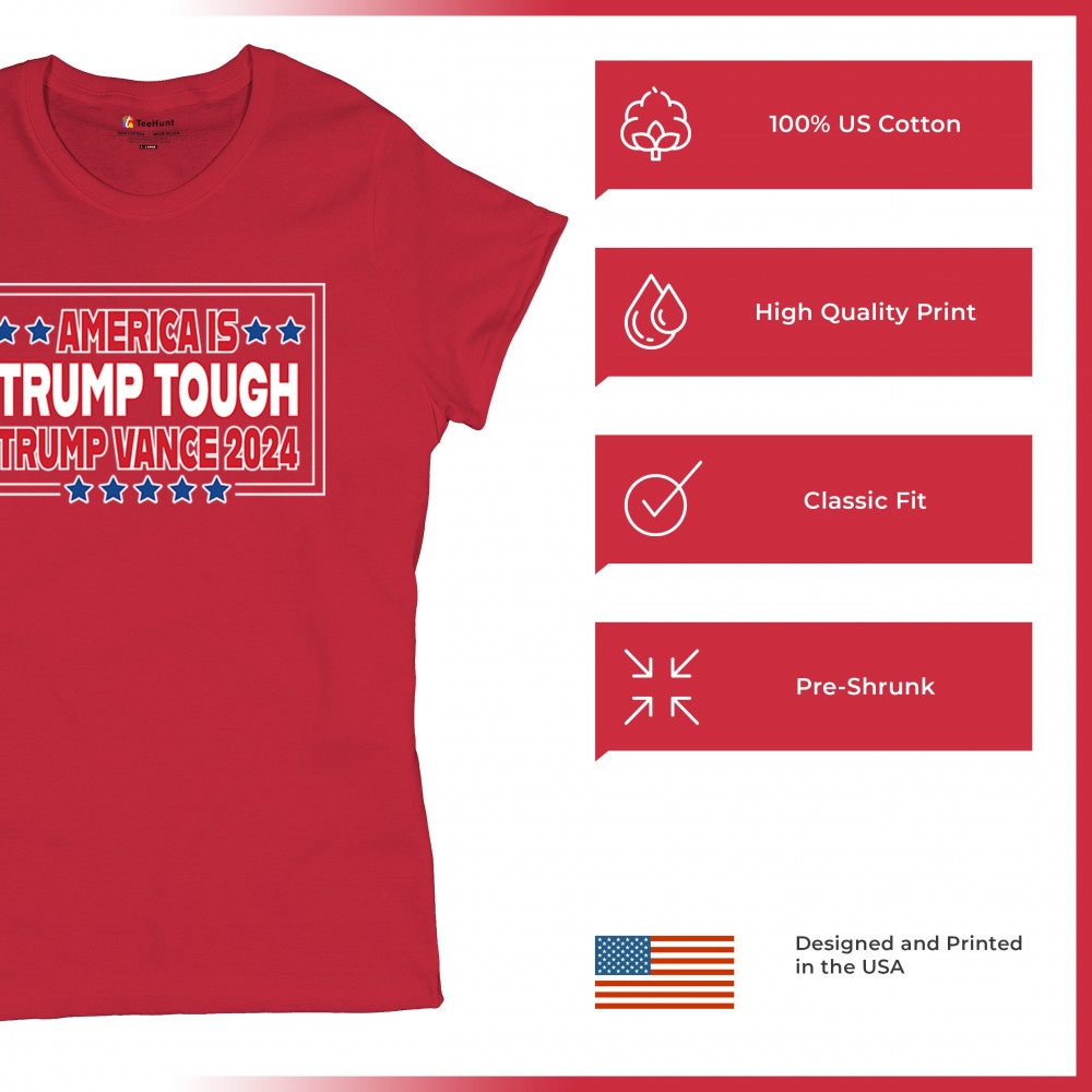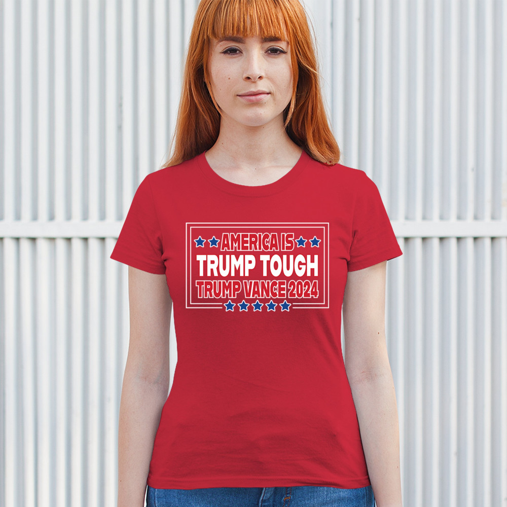 Support Trump and Vance in 2024 with this bold, patriotic design, perfect for rallies and everyday wear. Stand for America First principles and conservative values.