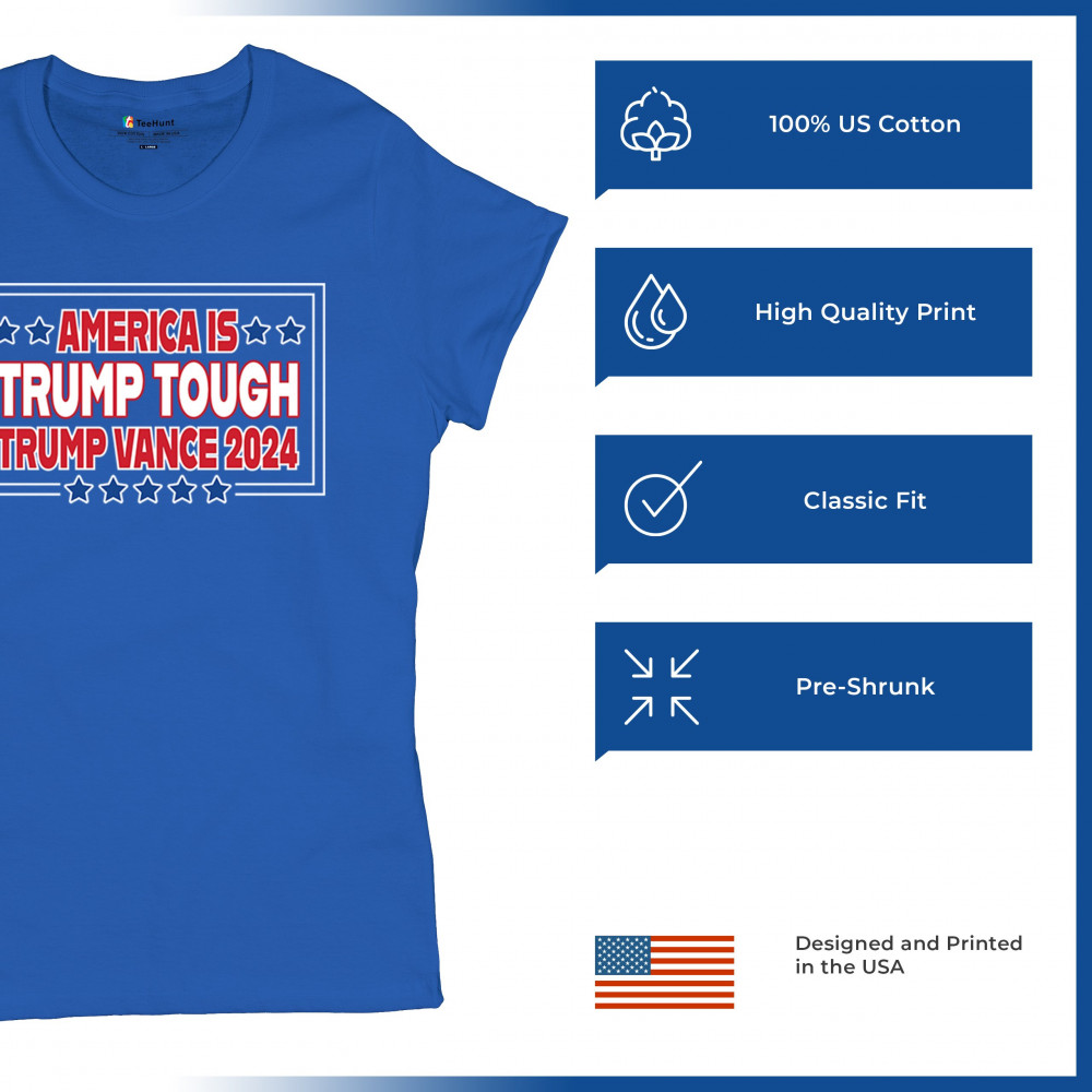 Support Trump and Vance in 2024 with this bold, patriotic design, perfect for rallies and everyday wear. Stand for America First principles and conservative values.