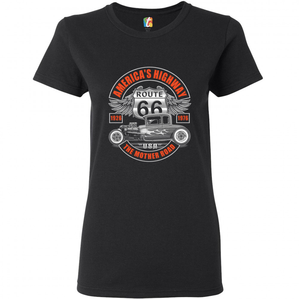 AMERICA'S HIGHWAY t-shirt route 66 the mother road hot rod women's tee black
