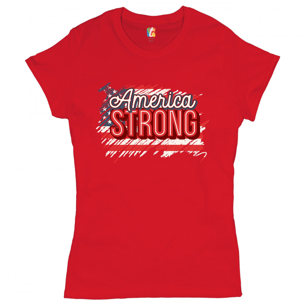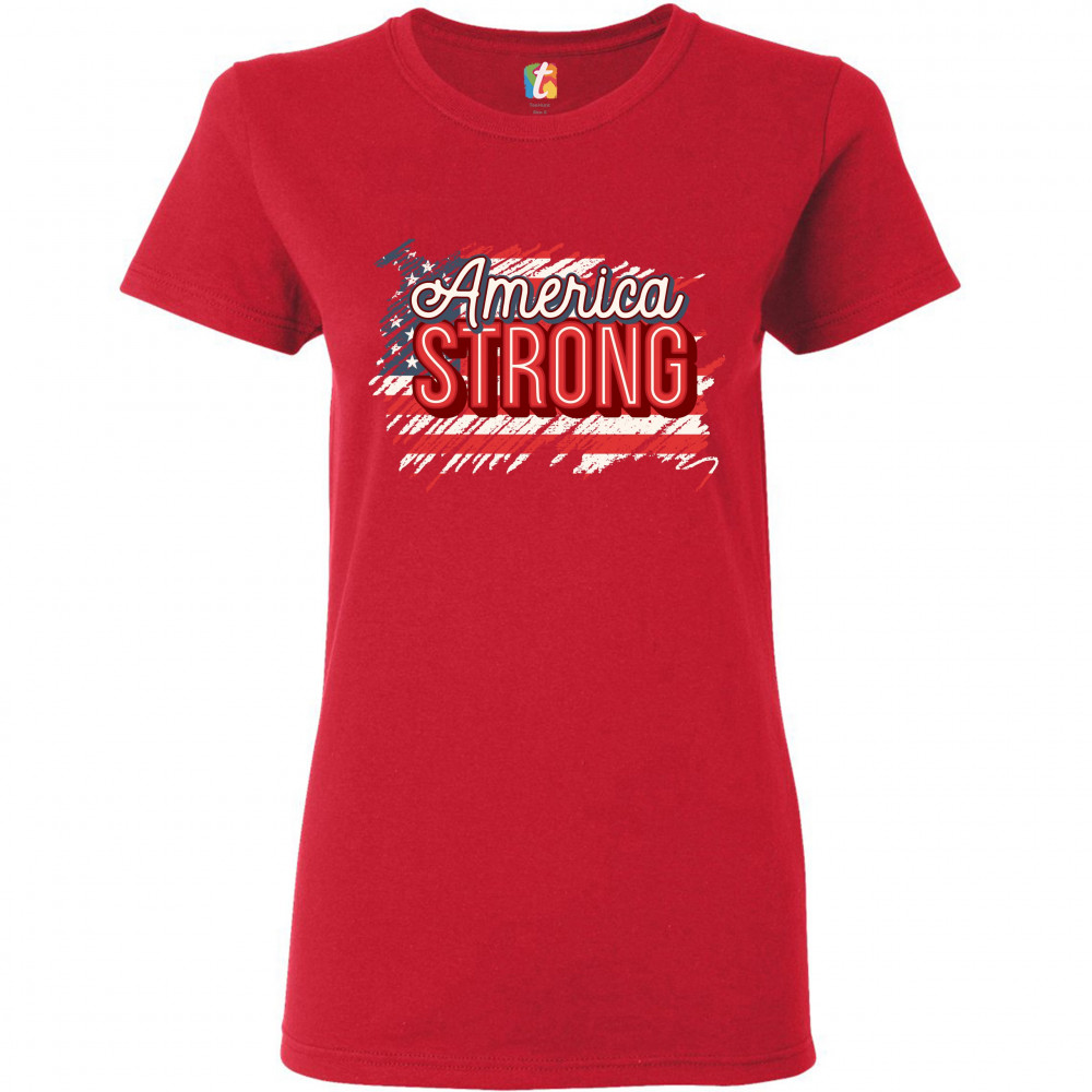 AMERICA STRONG t-shirt distressed american flag 4th of july usa women's tee red