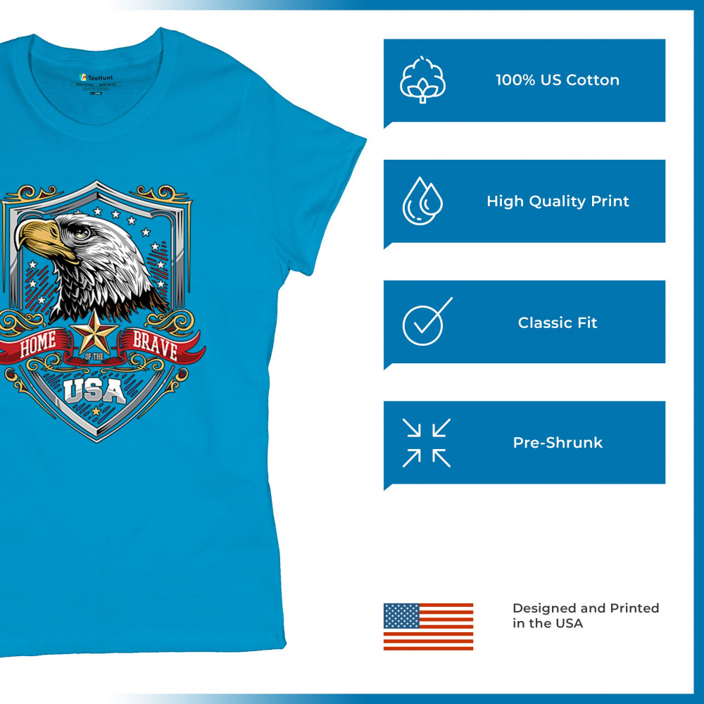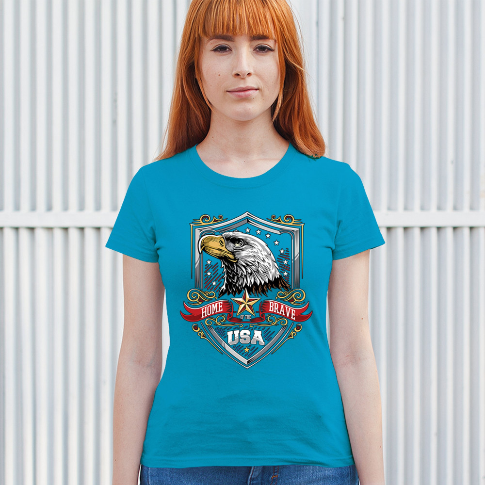Honor American spirit with this patriotic eagle shield design shirt. Featuring a bold bald eagle emblem, stars and stripes shield, and red white blue accents, it’s perfect for Veteran’s Day, 4th of July, and military pride. A true American pride shirt for those who live by “home of the brave, land of the free.â€