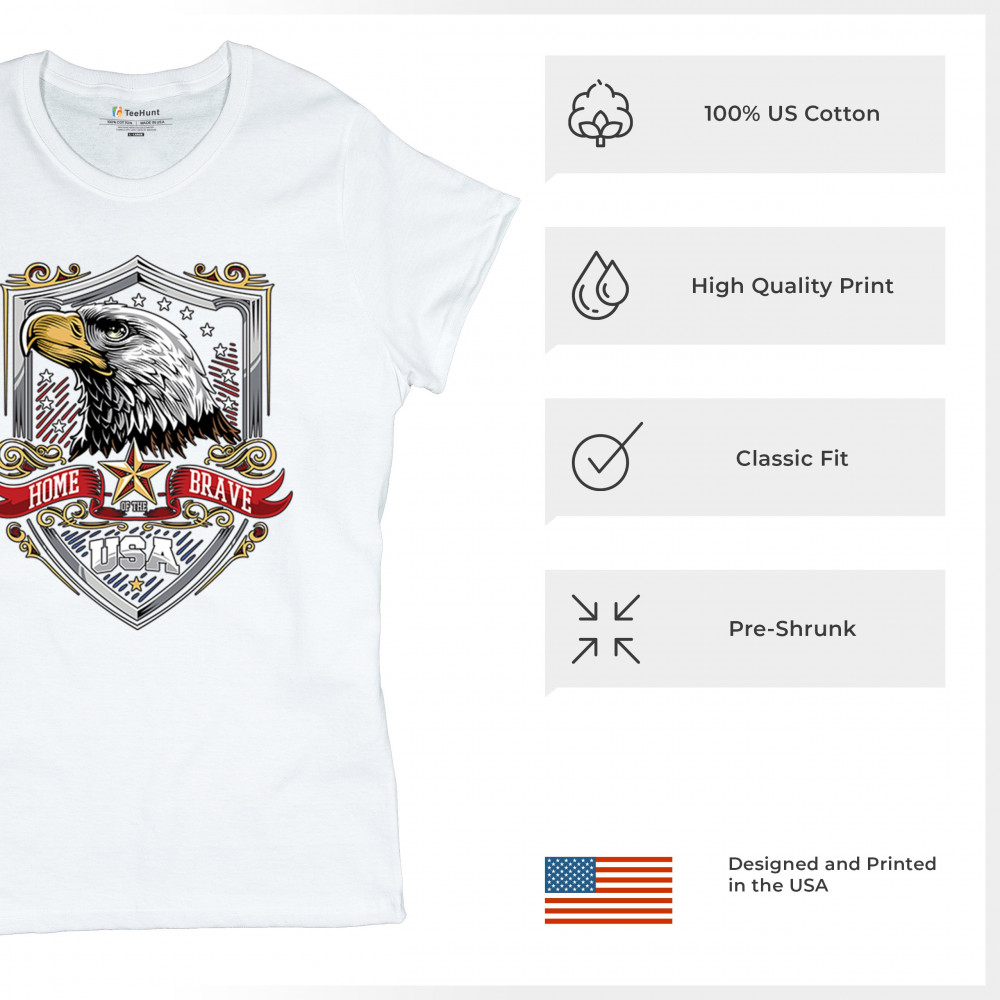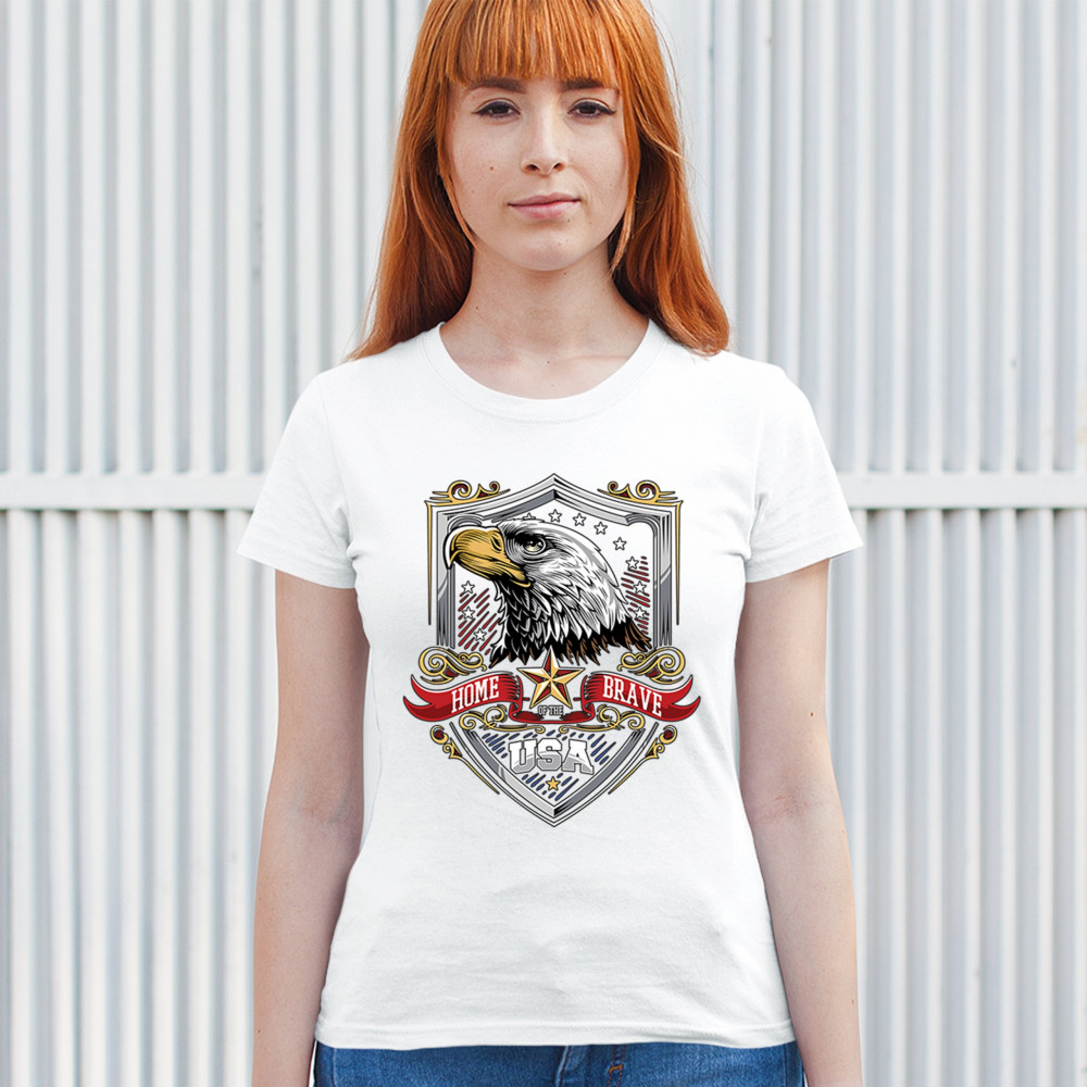 Honor American spirit with this patriotic eagle shield design shirt. Featuring a bold bald eagle emblem, stars and stripes shield, and red white blue accents, it’s perfect for Veteran’s Day, 4th of July, and military pride. A true American pride shirt for those who live by “home of the brave, land of the free.â€