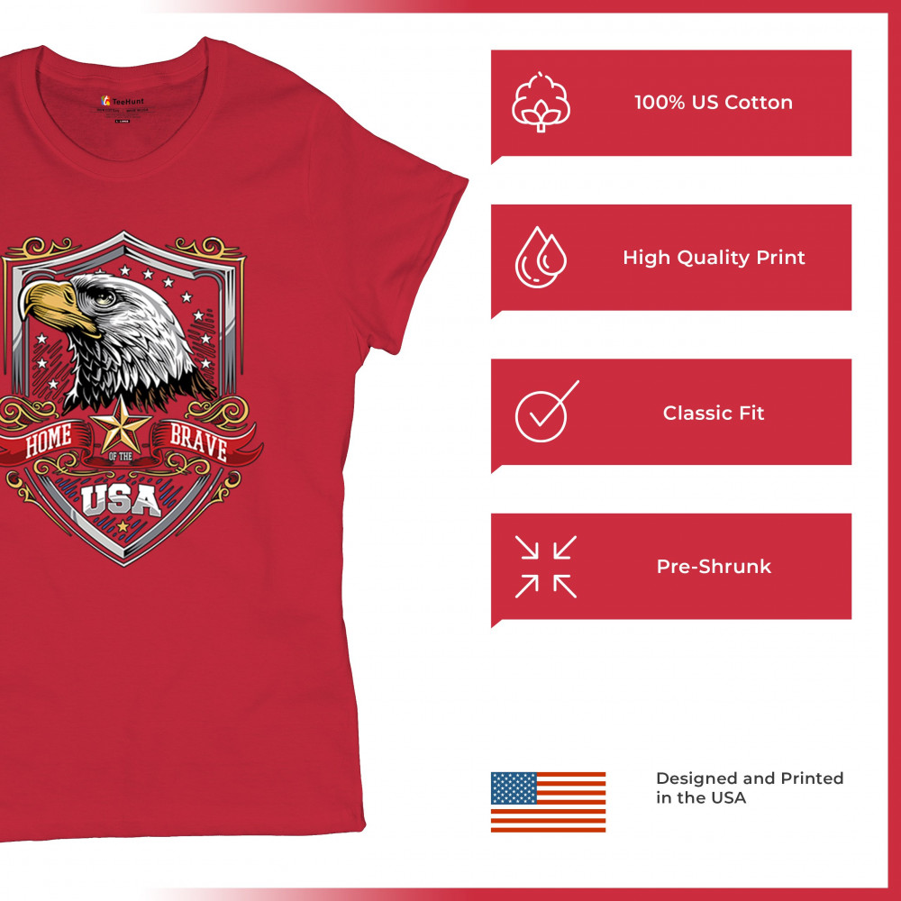 Honor American spirit with this patriotic eagle shield design shirt. Featuring a bold bald eagle emblem, stars and stripes shield, and red white blue accents, it’s perfect for Veteran’s Day, 4th of July, and military pride. A true American pride shirt for those who live by “home of the brave, land of the free.â€