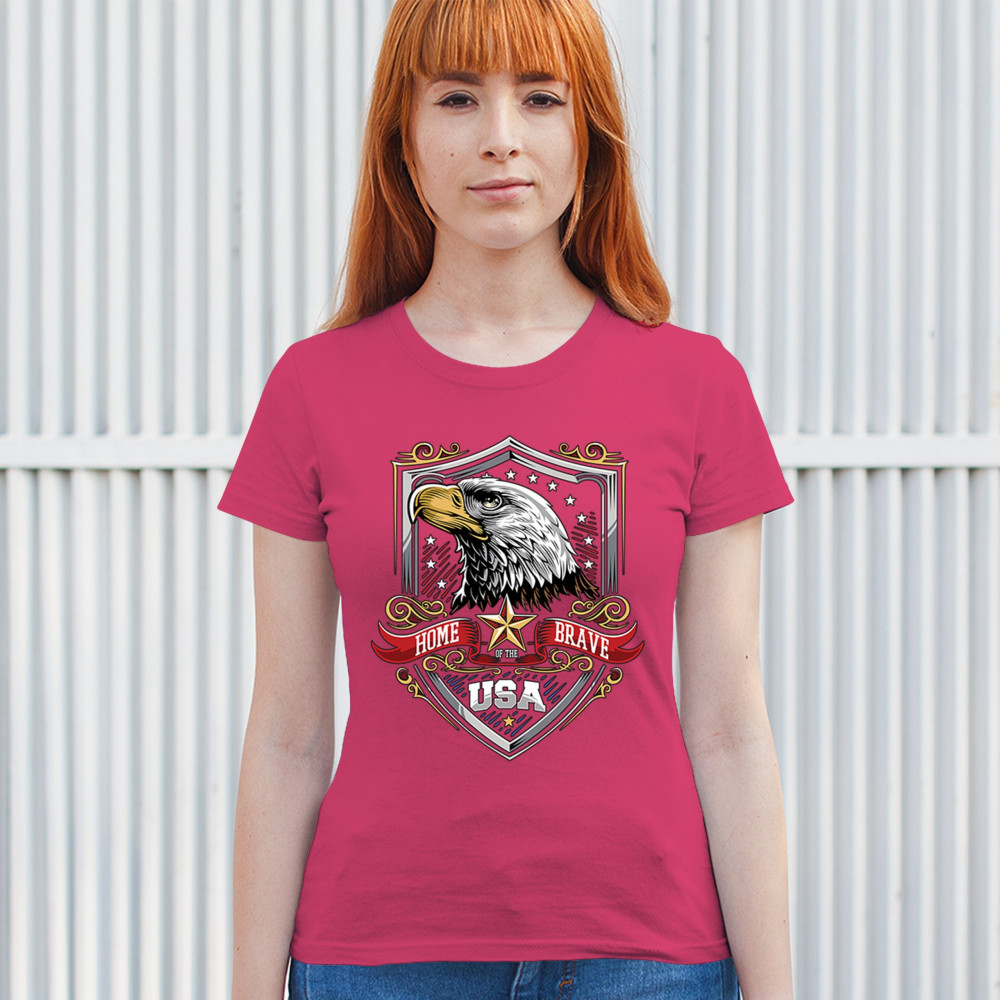 Honor American spirit with this patriotic eagle shield design shirt. Featuring a bold bald eagle emblem, stars and stripes shield, and red white blue accents, it’s perfect for Veteran’s Day, 4th of July, and military pride. A true American pride shirt for those who live by “home of the brave, land of the free.â€