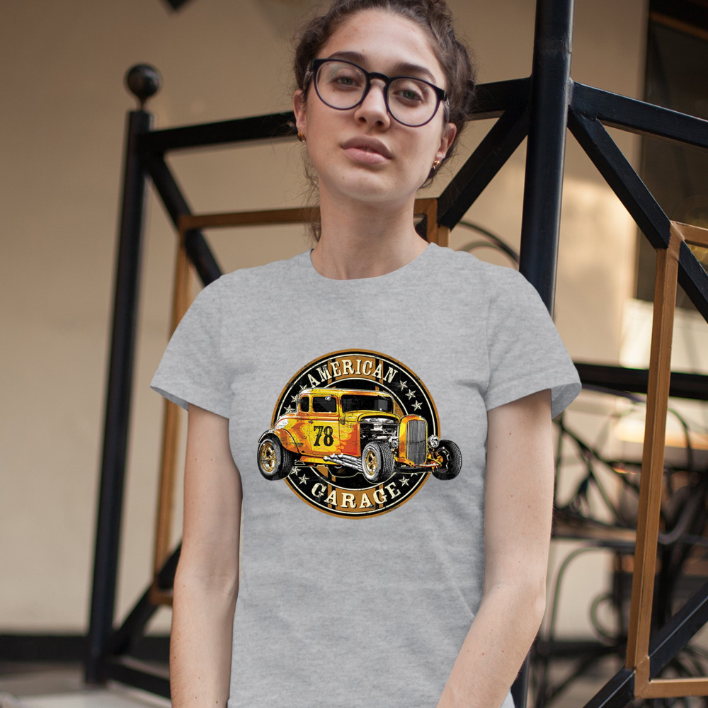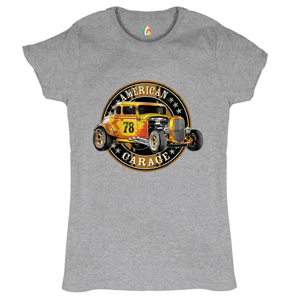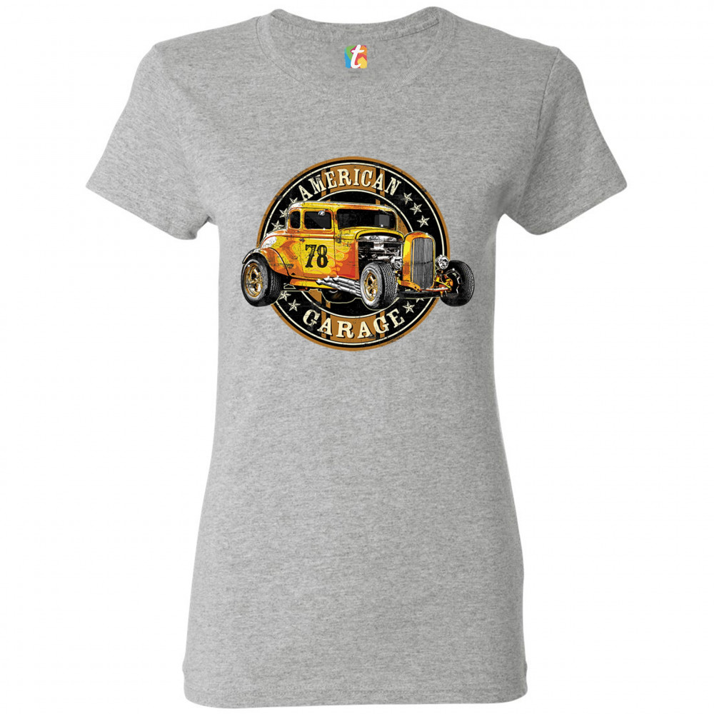 AMERICAN GARAGE t-shirt retro hot rod vintage american muscle women's tee gray