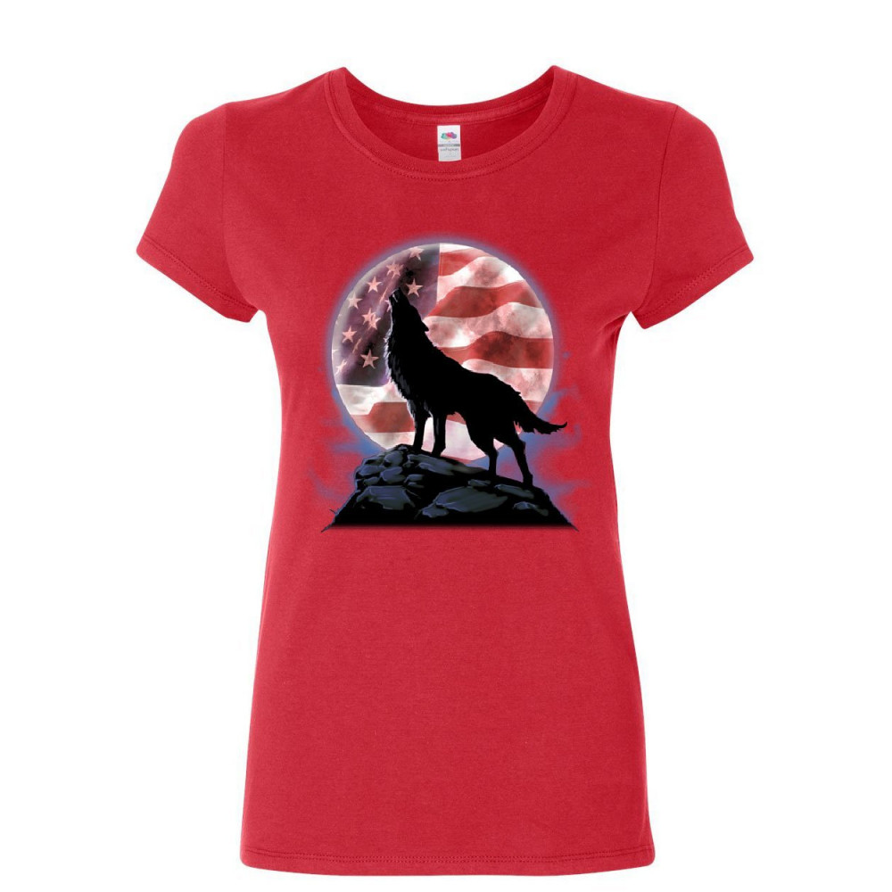 AMERICAN HOWLING WOLF women's t-shirt wildlife animal wolves wilderness shirt red