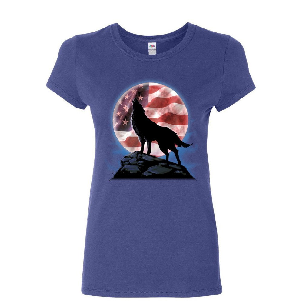 AMERICAN HOWLING WOLF women's t-shirt wildlife animal wolves wilderness shirt blue