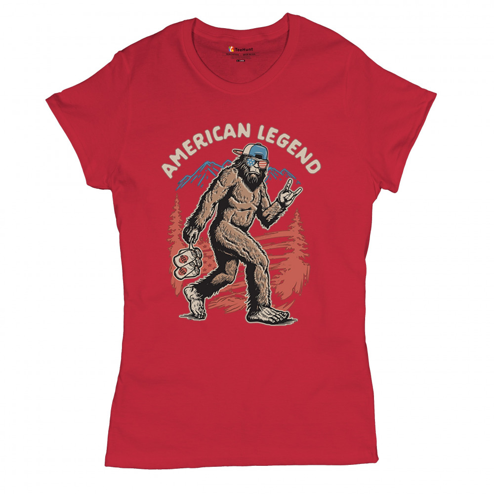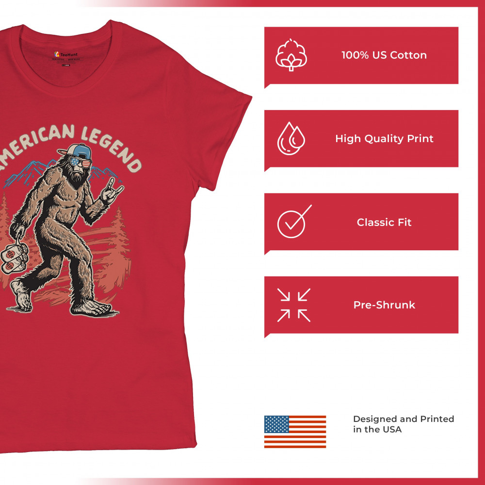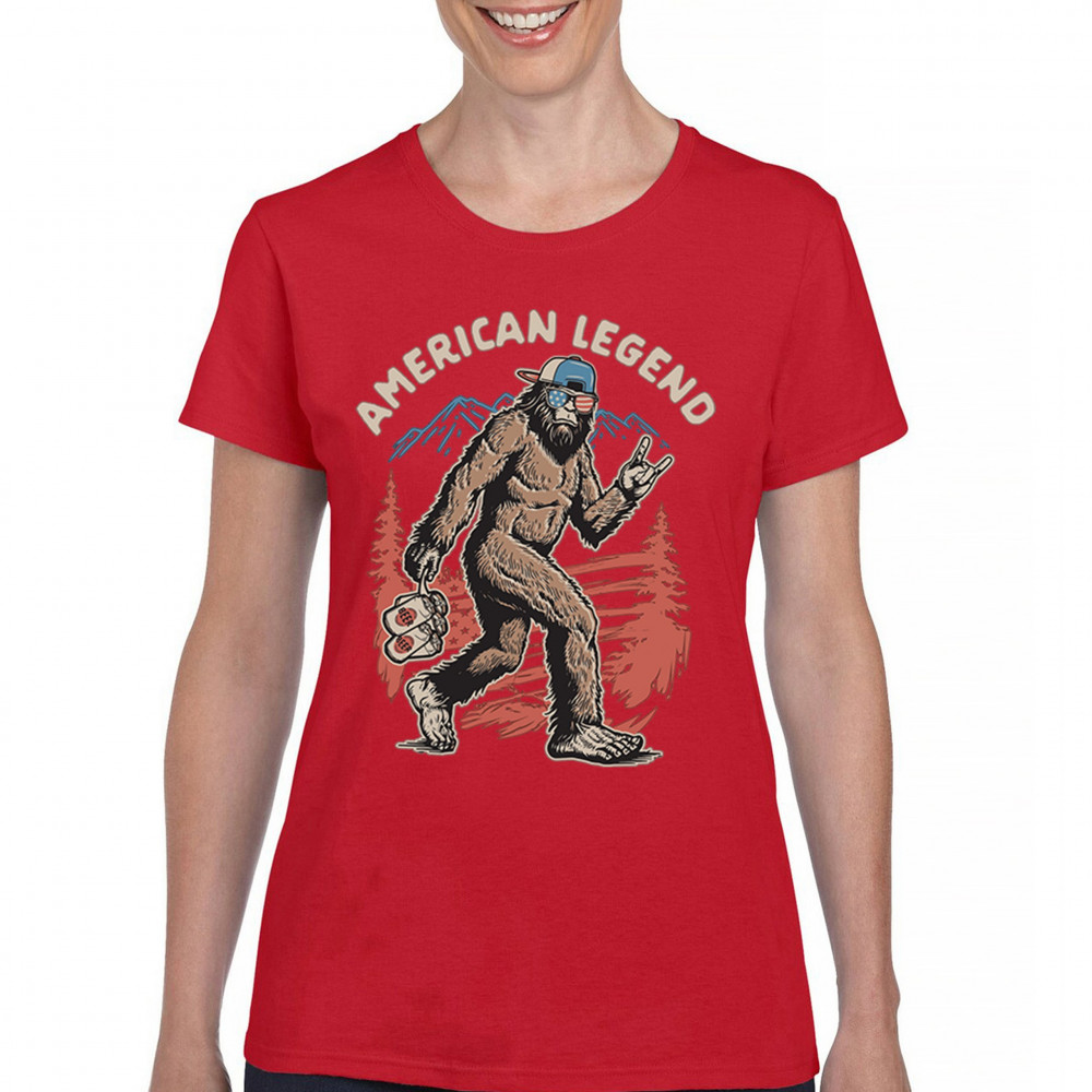 Funny Bigfoot design with patriotic flair—ideal for BBQs, beer lovers, campers, and cryptid fans who love to party in style!