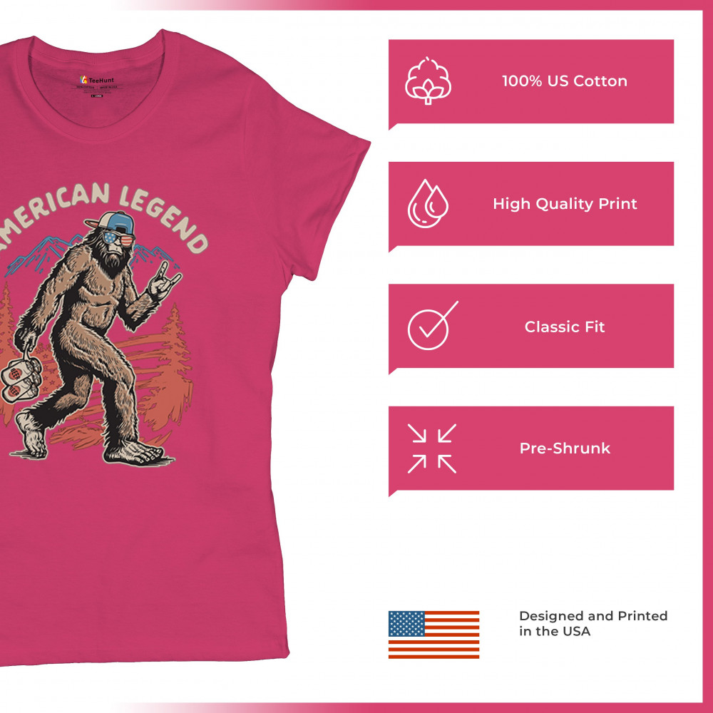 Funny Bigfoot design with patriotic flair—ideal for BBQs, beer lovers, campers, and cryptid fans who love to party in style!