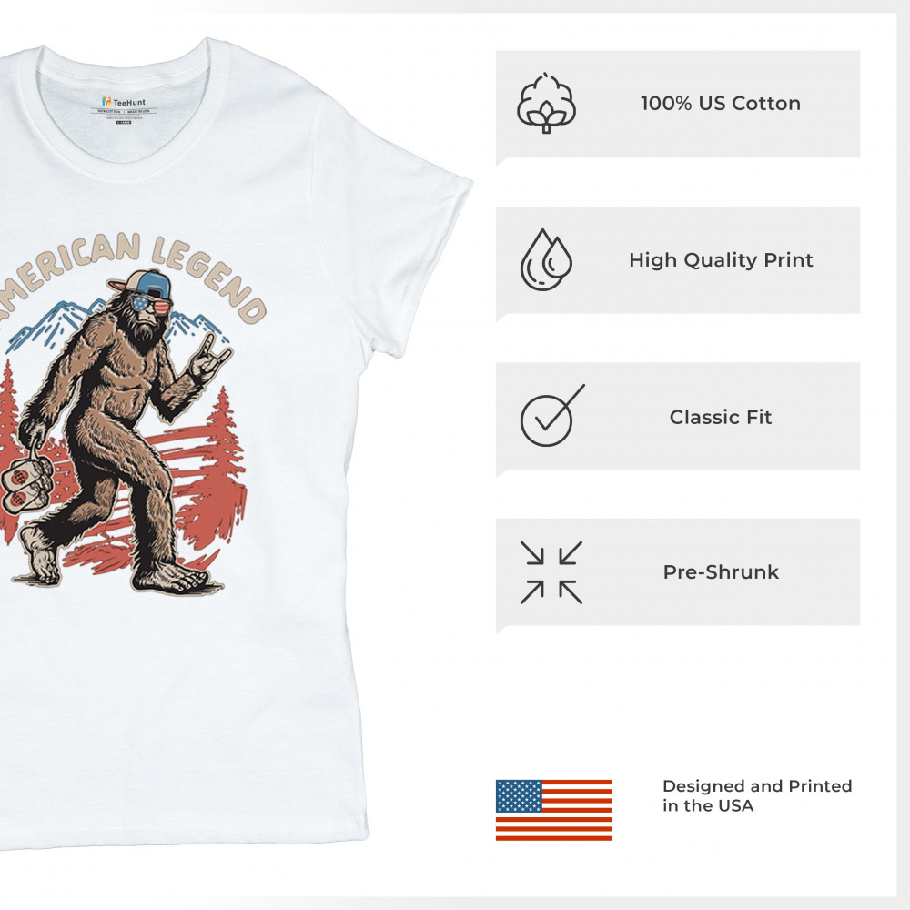 Funny Bigfoot design with patriotic flair—ideal for BBQs, beer lovers, campers, and cryptid fans who love to party in style!