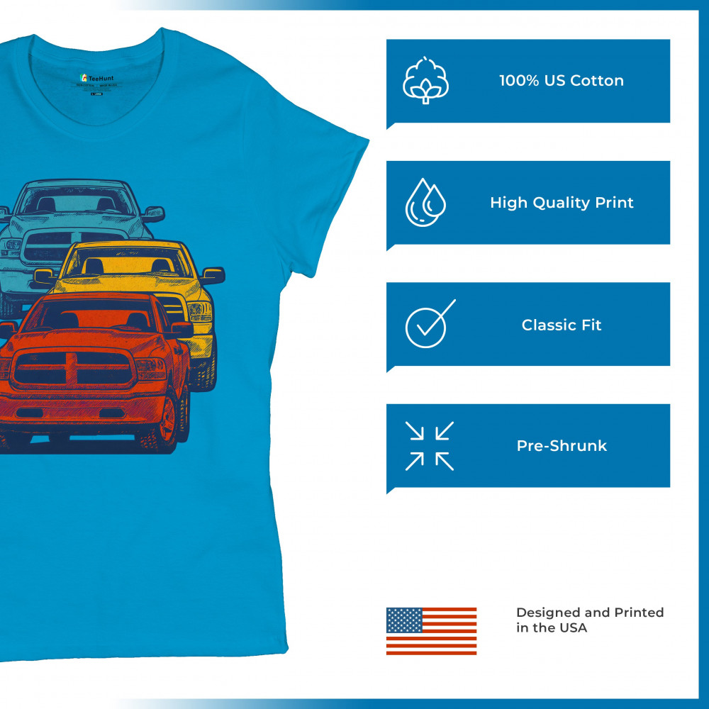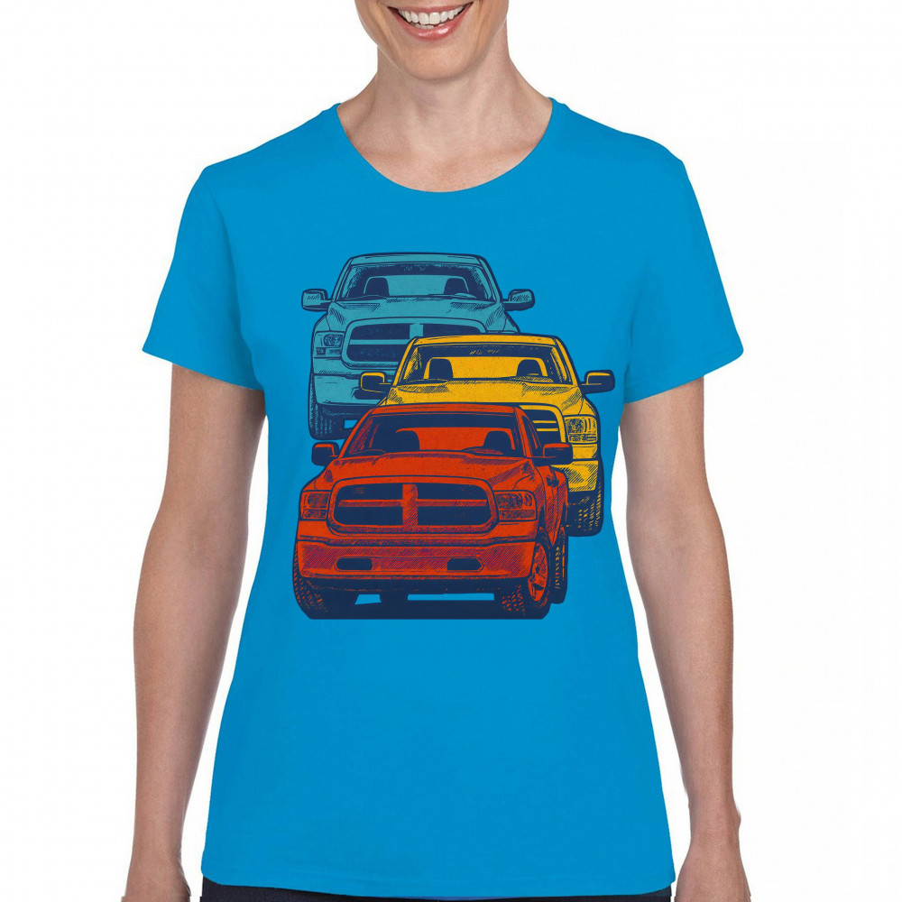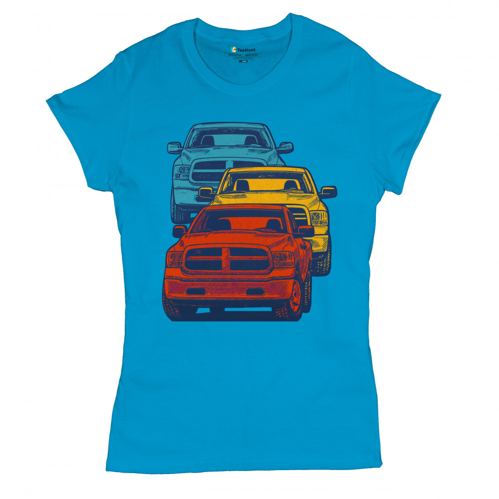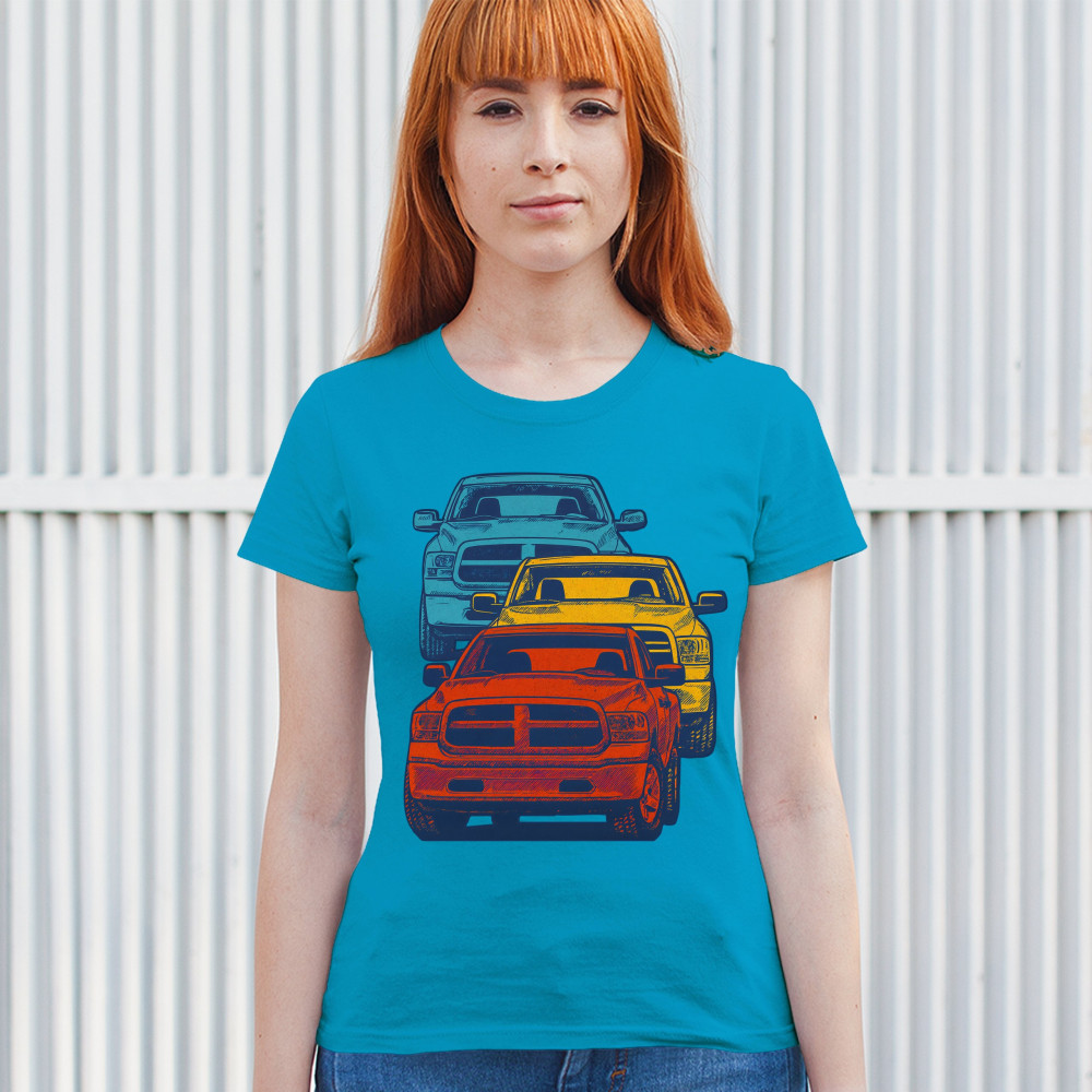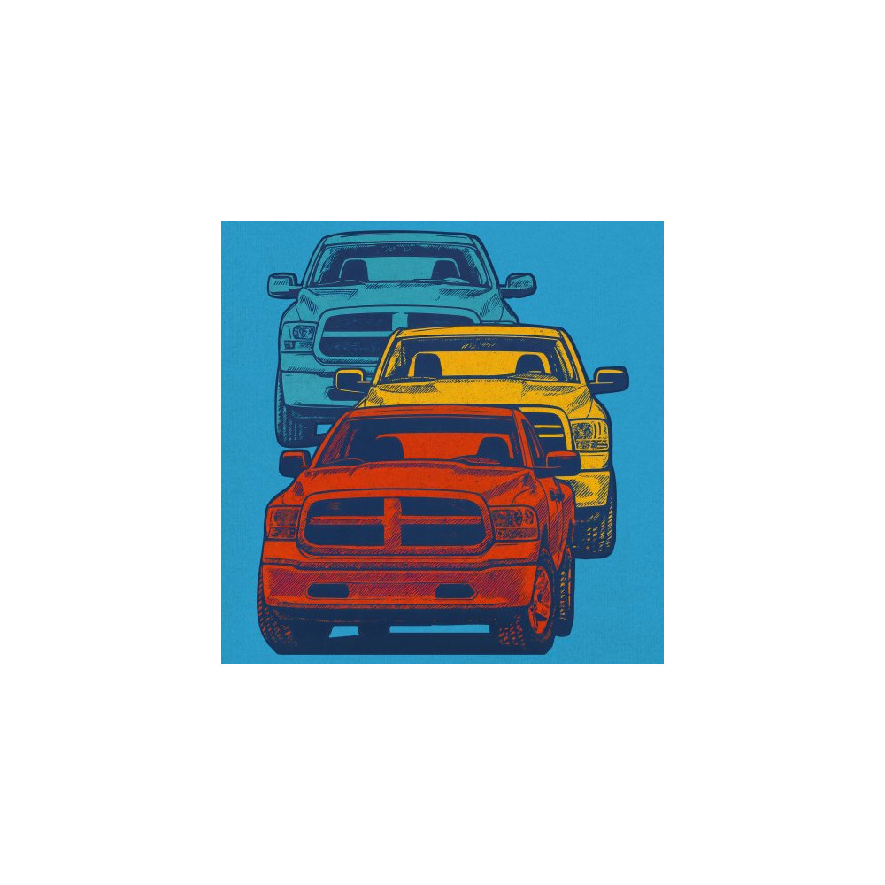 Boldly stacked and powerfully styled, this multicolor truck design showcases red, yellow, and blue pickups in a vertical formation. Made for fans of lifted truck culture, horsepower, and off-road pride, it celebrates diesel grit, road attitude, and the spirit of truck meets and gearhead unity.