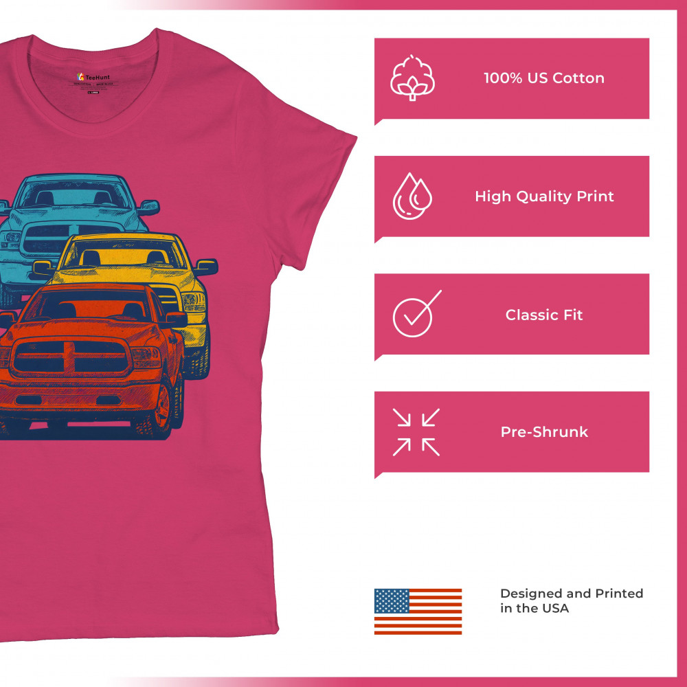 Boldly stacked and powerfully styled, this multicolor truck design showcases red, yellow, and blue pickups in a vertical formation. Made for fans of lifted truck culture, horsepower, and off-road pride, it celebrates diesel grit, road attitude, and the spirit of truck meets and gearhead unity.