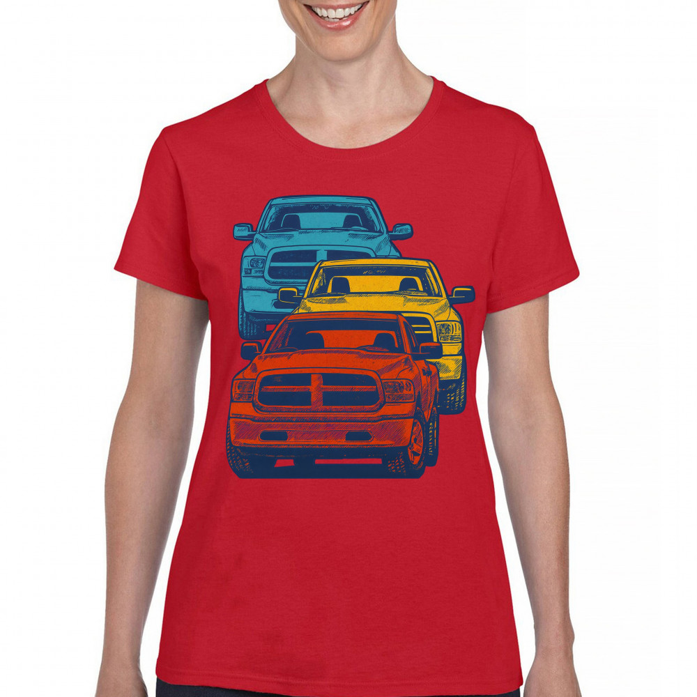 Boldly stacked and powerfully styled, this multicolor truck design showcases red, yellow, and blue pickups in a vertical formation. Made for fans of lifted truck culture, horsepower, and off-road pride, it celebrates diesel grit, road attitude, and the spirit of truck meets and gearhead unity.