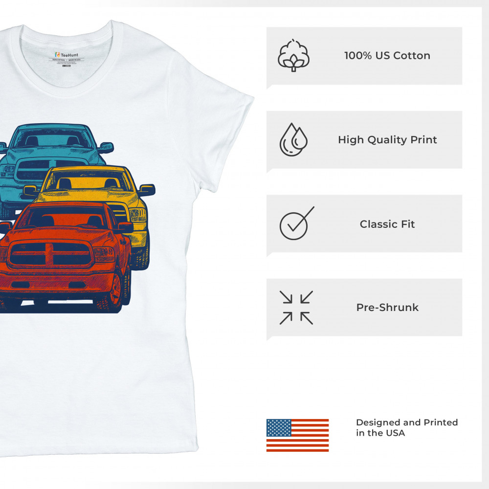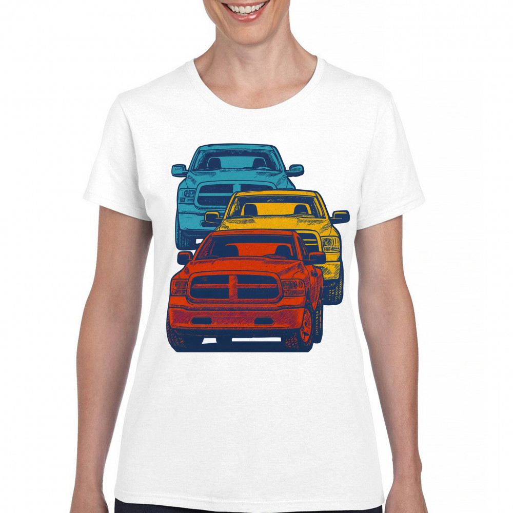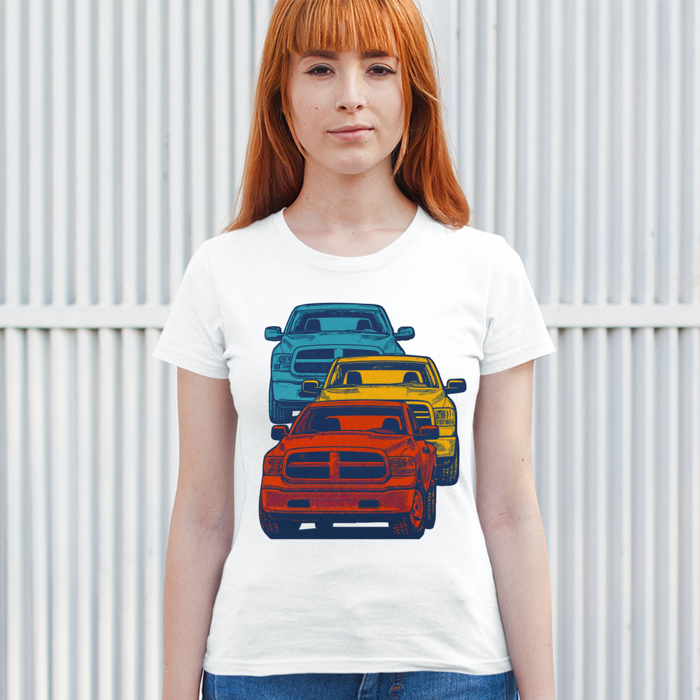 Boldly stacked and powerfully styled, this multicolor truck design showcases red, yellow, and blue pickups in a vertical formation. Made for fans of lifted truck culture, horsepower, and off-road pride, it celebrates diesel grit, road attitude, and the spirit of truck meets and gearhead unity.