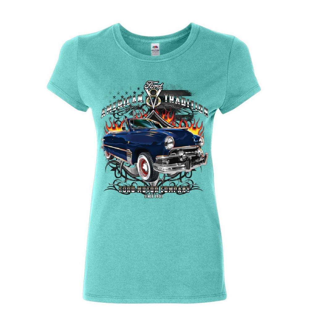 AMERICAN TRADITION ford motor company women's t-shirt classic since 1903 shirt light blue