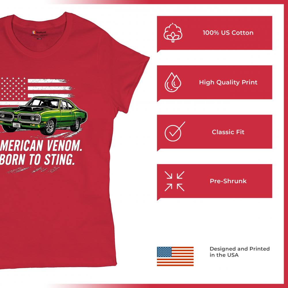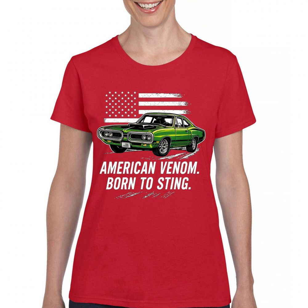 Inject venom into your street style with this bold green muscle car design. With “Born to Sting†power and a backdrop of American pride, this graphic is perfect for Scat fans, gearheads, and drivers who embrace speed, dominance, and the sound of true muscle. Rule car meets, rev battles, and highway runs with unmatched attitude.