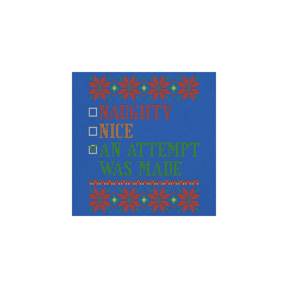 A funny print featuring a check list with options: "Naughty", "Nice" and a checked one "An Attempt Was Made". The print is decorated as an ugly sweater. Amazing choice to make people smile and spread positive vibes on Christmas Eve.