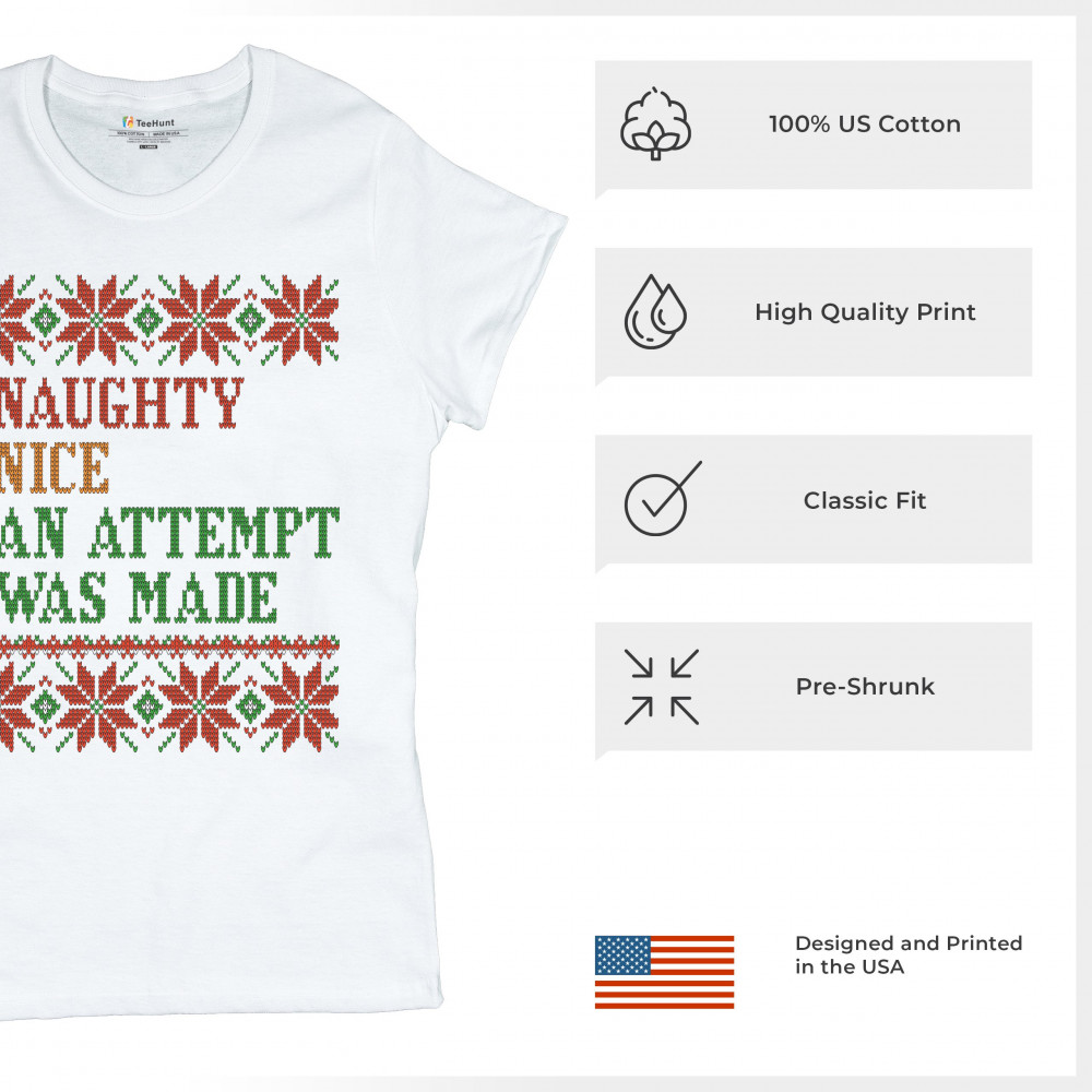 AN ATTEMPT WAS MADE t-shirt ugly sweater naughty or nice christmas women's tee white