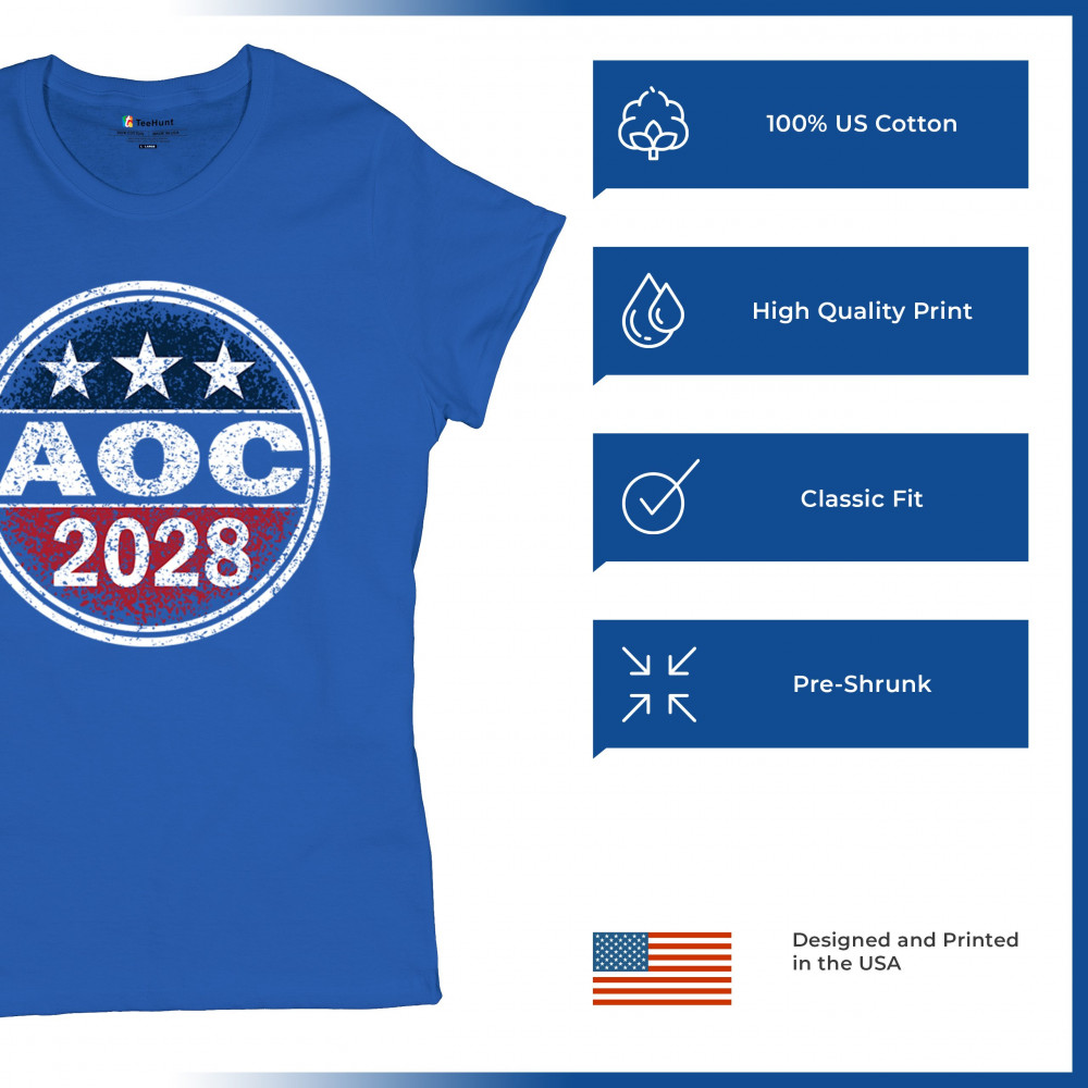 Show support for AOC 2028 with this patriotic distressed badge design. Great for progressives, rallies, events, and young political activists.