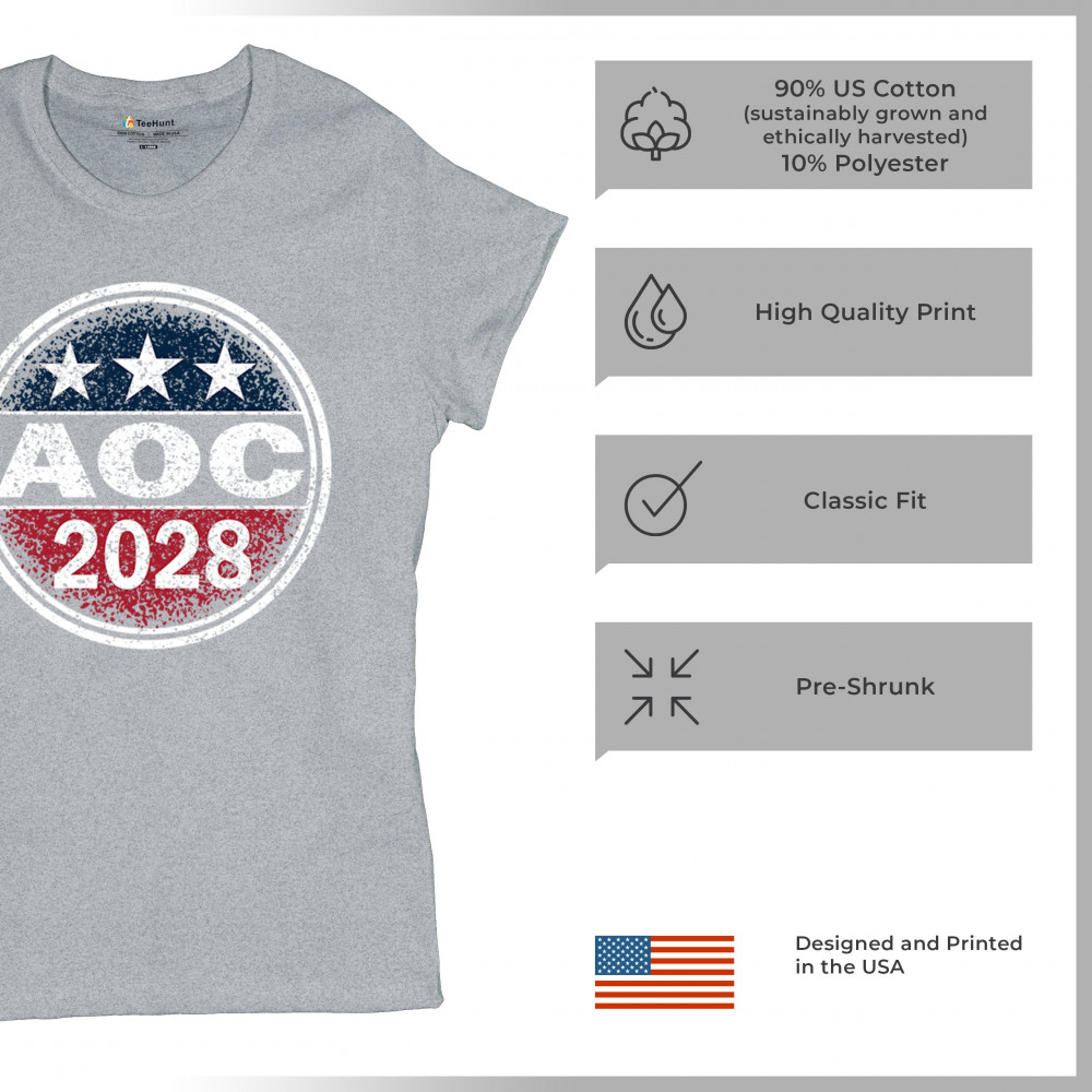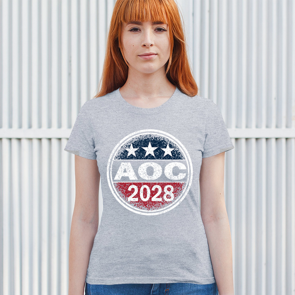 Show support for AOC 2028 with this patriotic distressed badge design. Great for progressives, rallies, events, and young political activists.