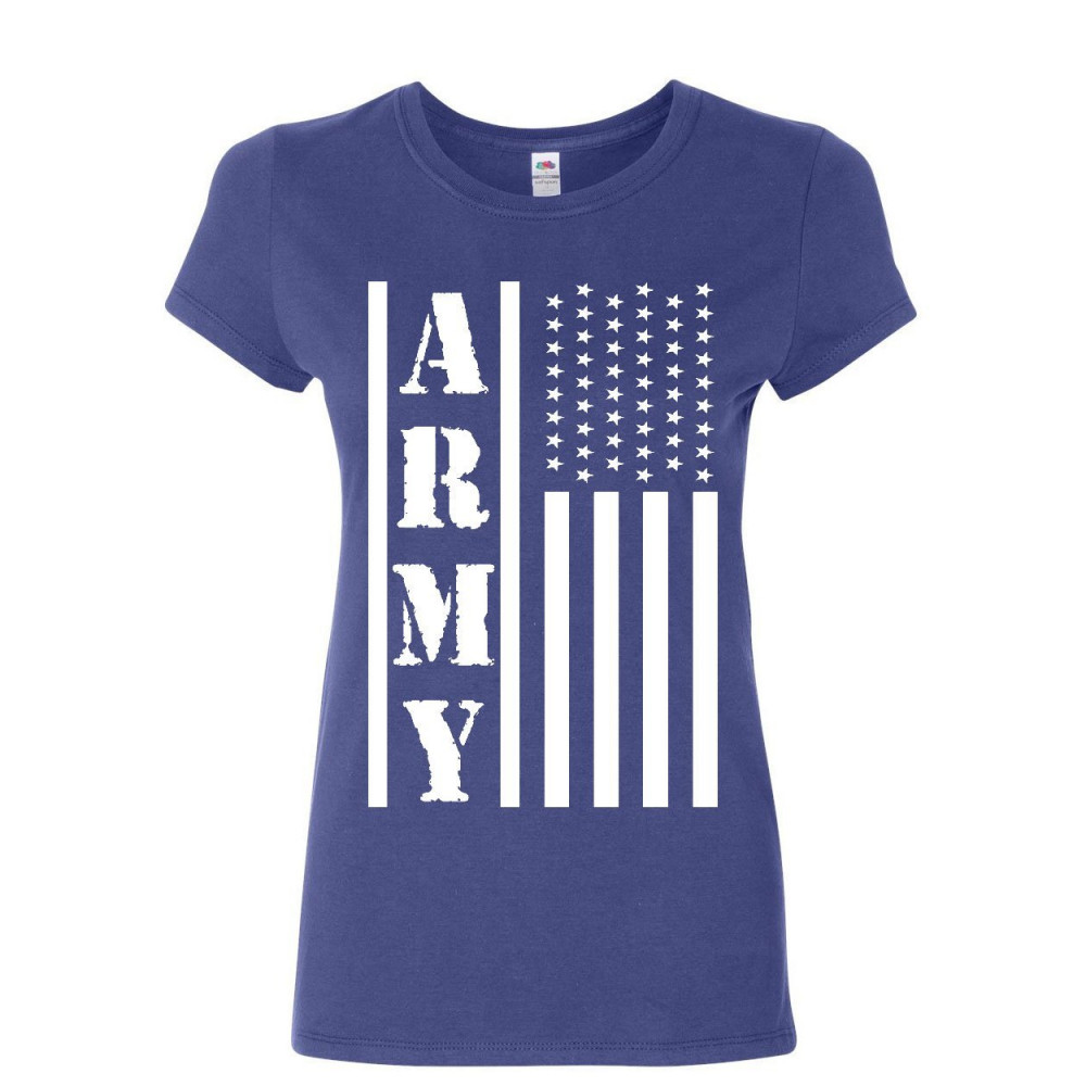 ARMY FLAG MILITARY women's t-shirt patriot veteran stars & stripes honor shirt blue