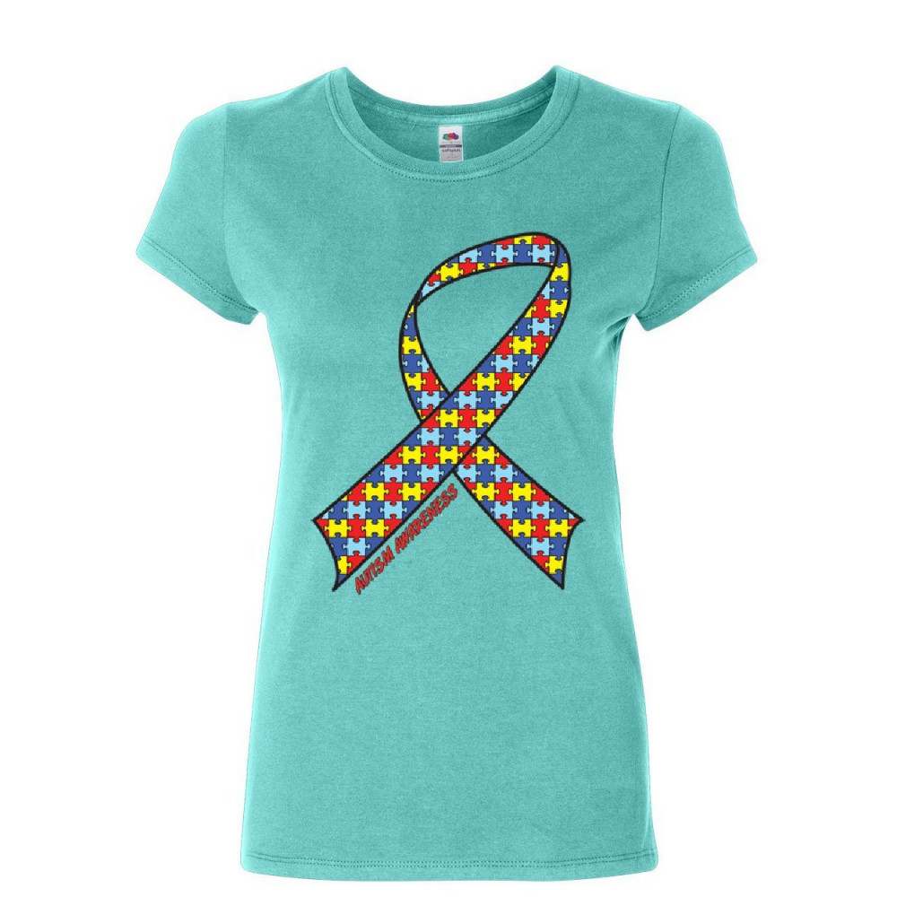 AUTISM AWARENESS RIBBON women's t-shirt support care love asd asperger shirt light blue
