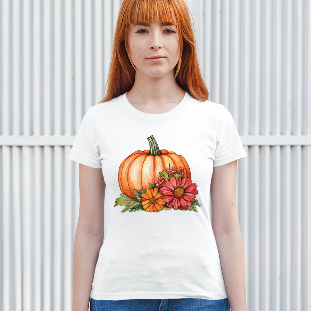 Celebrate autumn with our charming pumpkin and floral design. Perfect for seasonal decor, gifts, and showcasing your fall spirit. Ideal for Thanksgiving!
