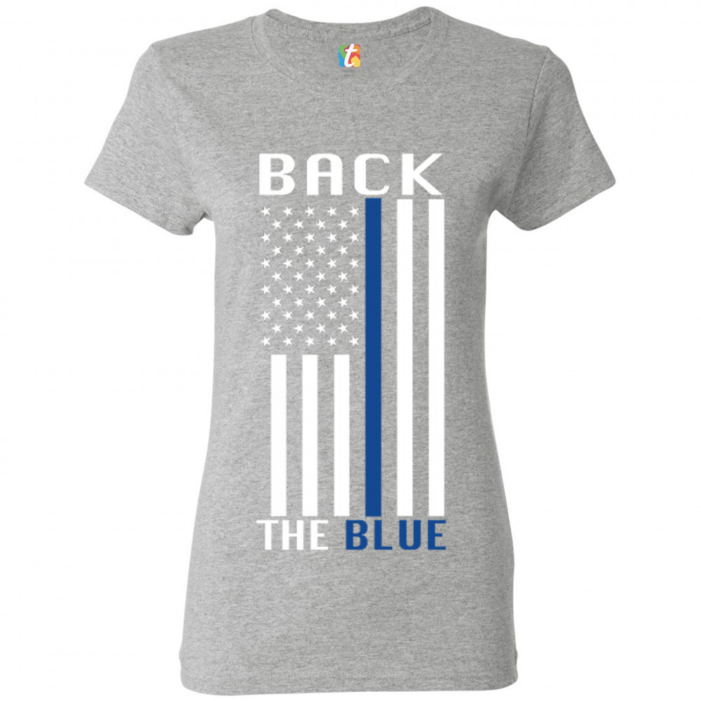 BACK THE BLUE AMERICAN FLAG t-shirt police law enforcement women's tee gray