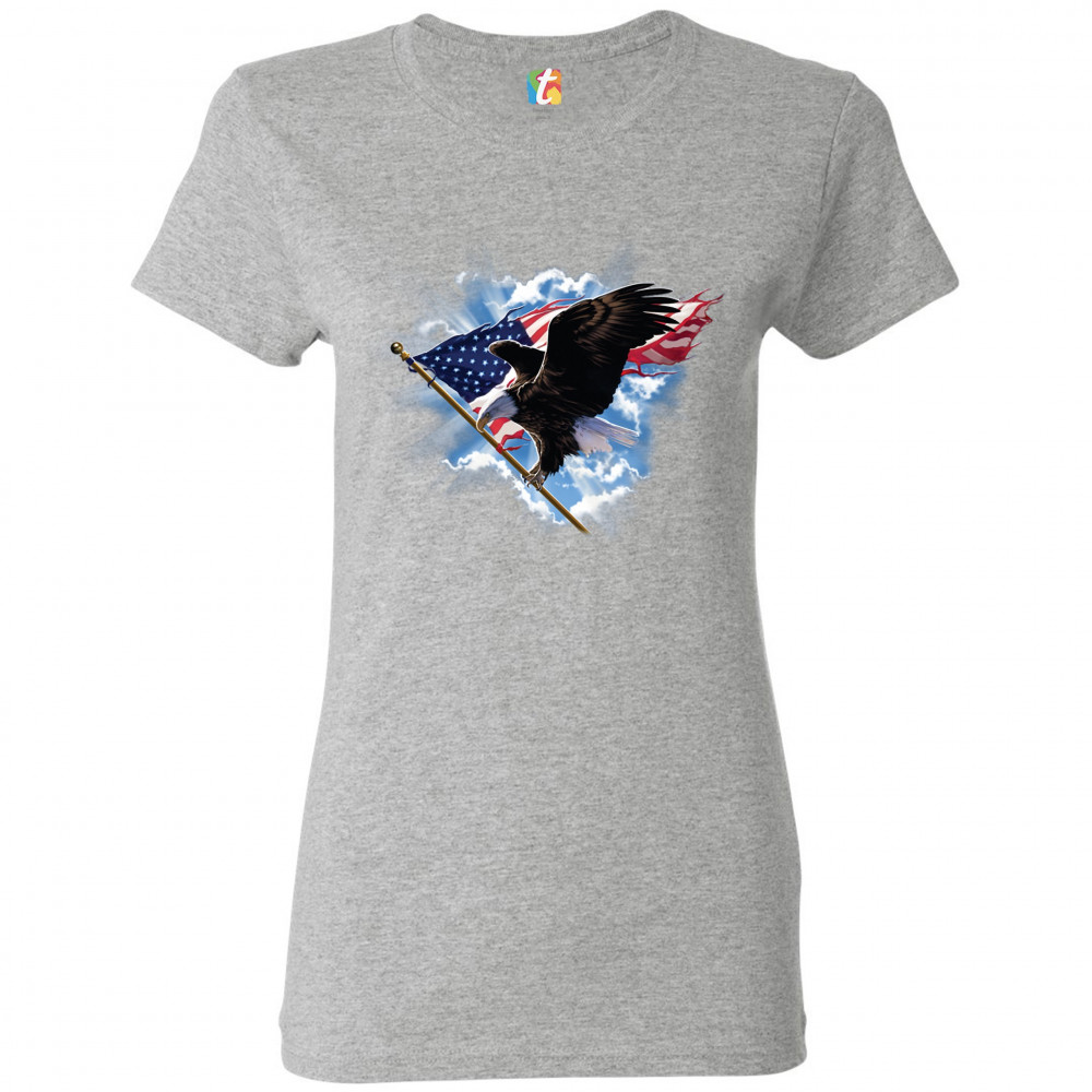 BALD EAGLE CARRYING THE AMERICAN FLAG t-shirt 4th of july patriotic women's tee gray