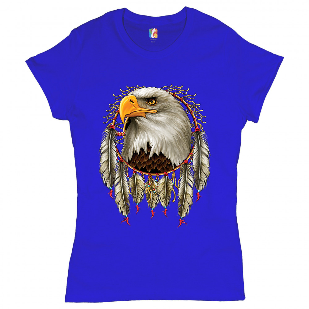 BALD EAGLE DREAMCATCHER t-shirt indigenous native american heritage women's tee royal blue