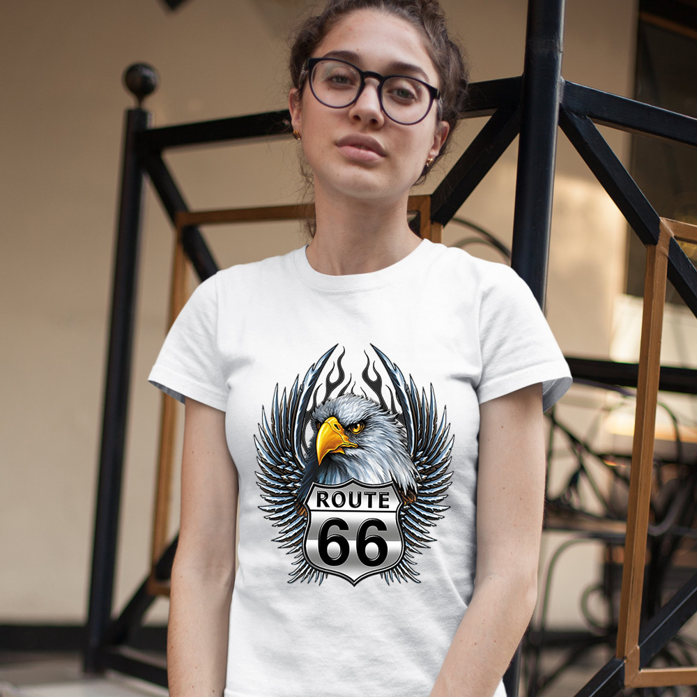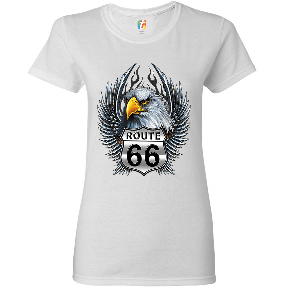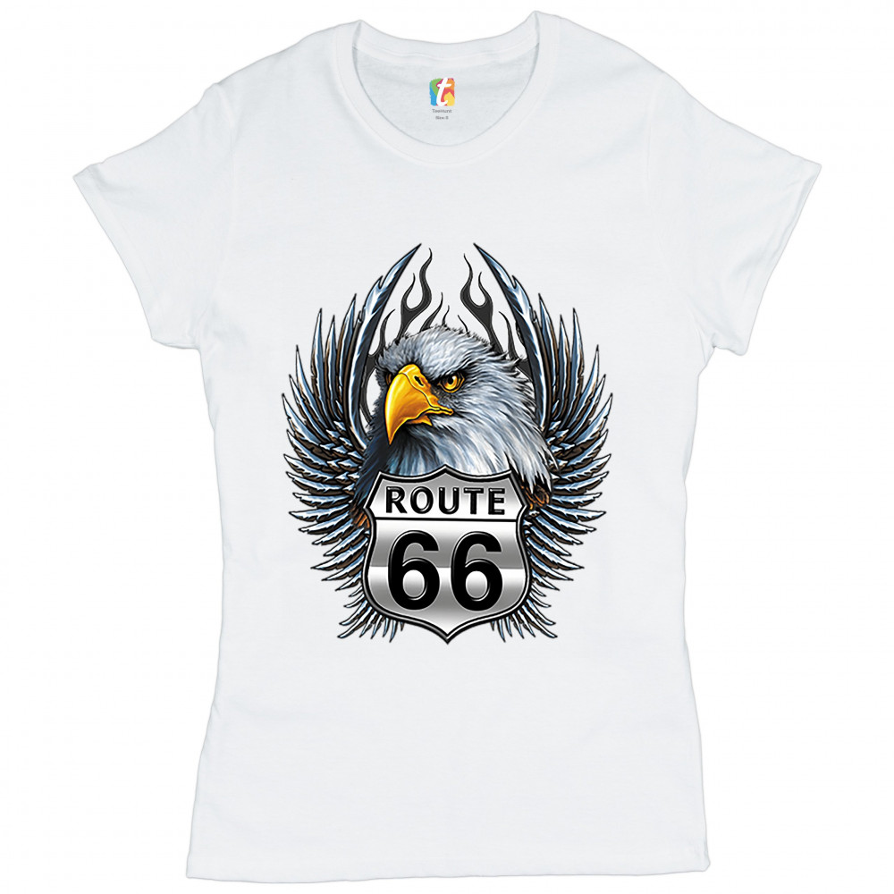 BALD EAGLE ROUTE 66 ROAD SIGN t-shirt live to ride born to be wild women's tee white